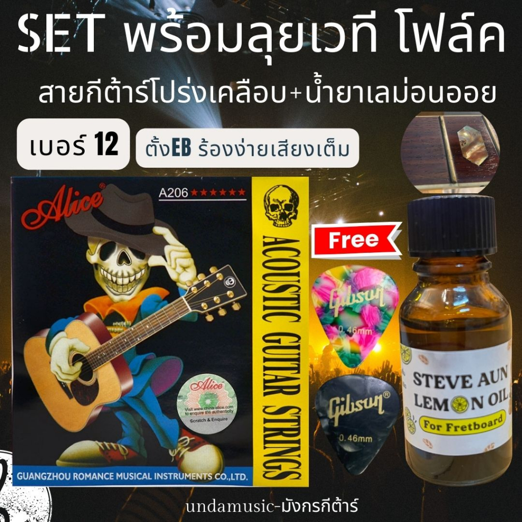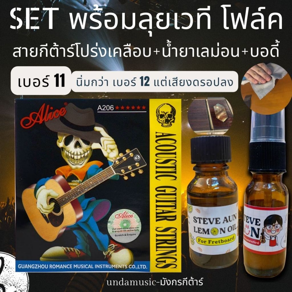 สายกีตาร์โปร่ง Alice R + น้ำยา STEVE AUN รุ่น LEMON OIL,clean Set พร้อมลุยเวที โฟล์ค สายกีต้าร์เคลือบกันสนิม ของเเท้100%