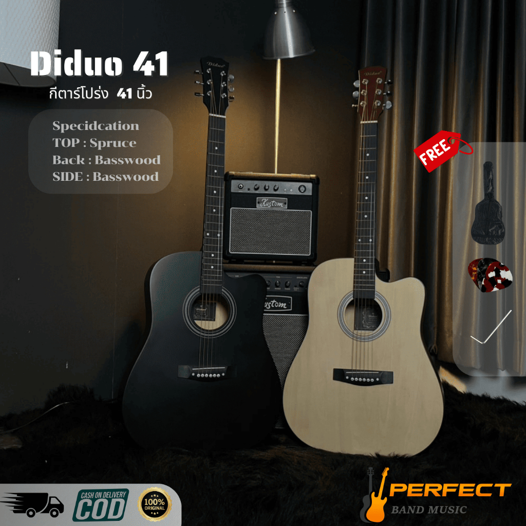 Diduo 41 กีตาร์โปร่ง Diduo 41 เล่นง่ายไม่เจ็บมือ ผ่อน 0 % นานสูงสุด 6 เดือน พร้อมกระเป๋าขนาด 41 นิ้ว