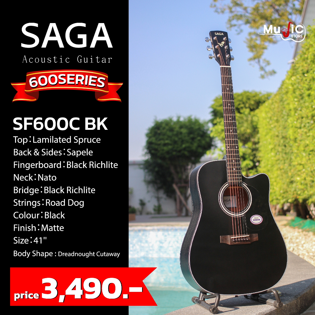 Saga SF600 Series Cutaway Acoustic Guitar (With Bag) กีต้าร์โปร่ง – โปร่งไฟฟ้า พร้อมกระเป๋า