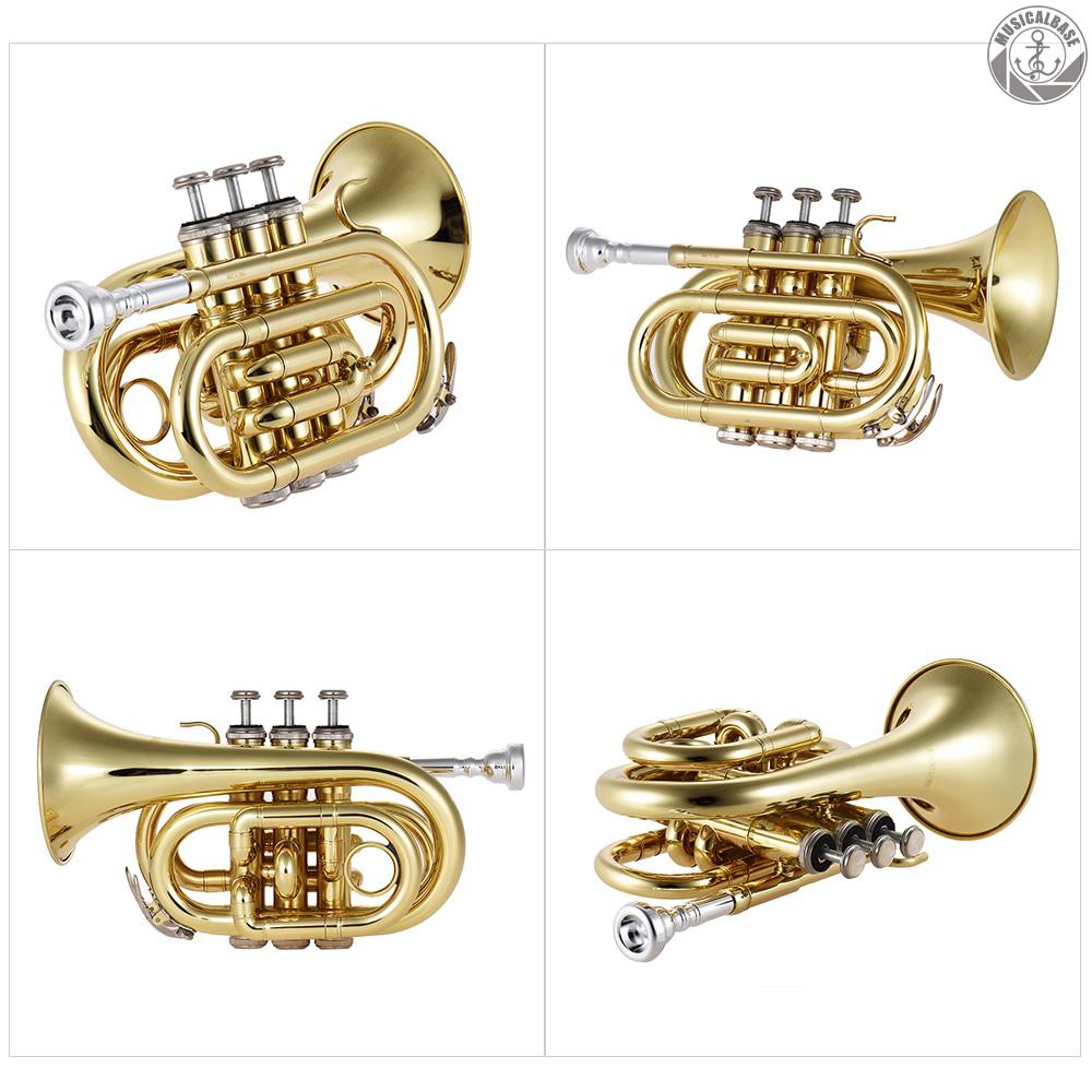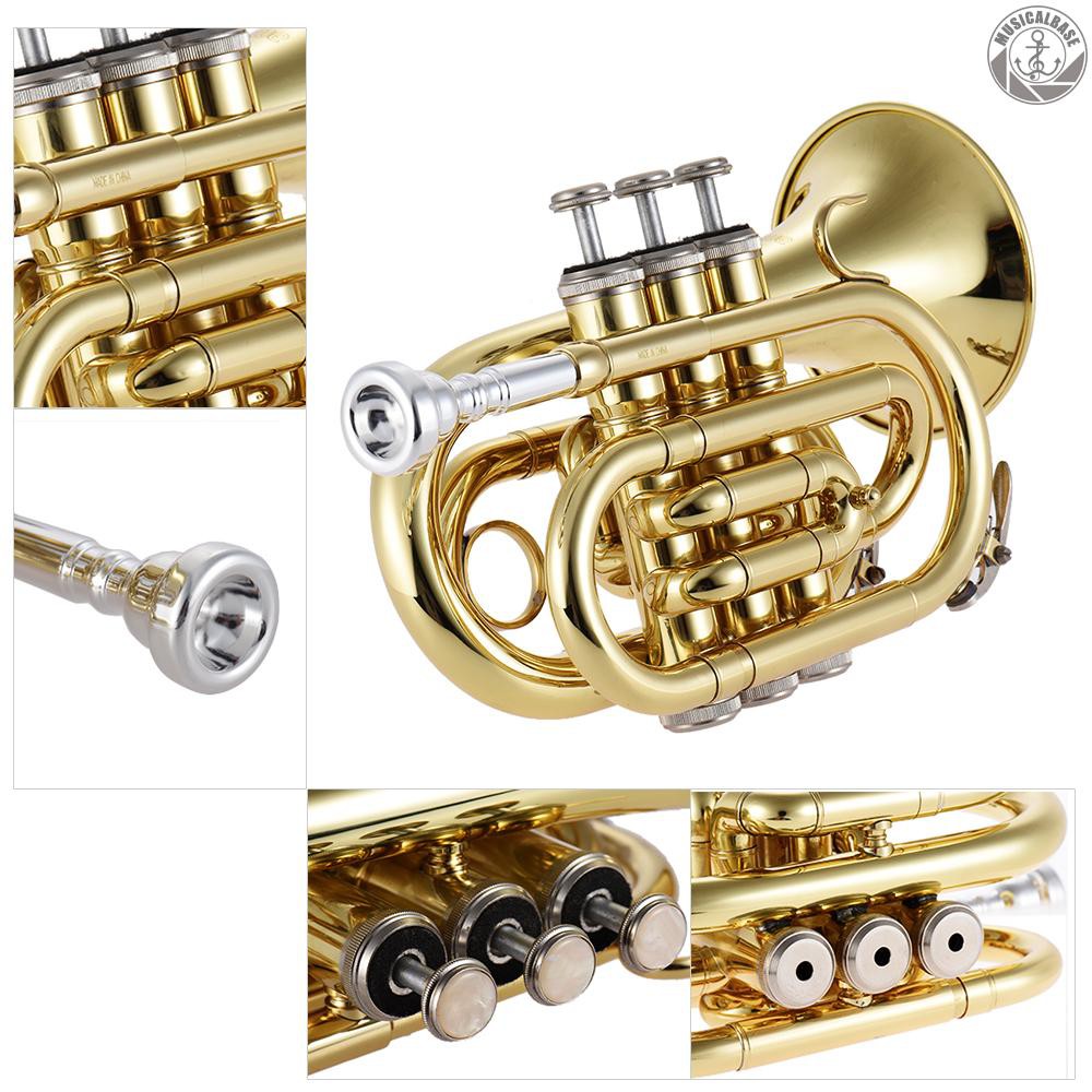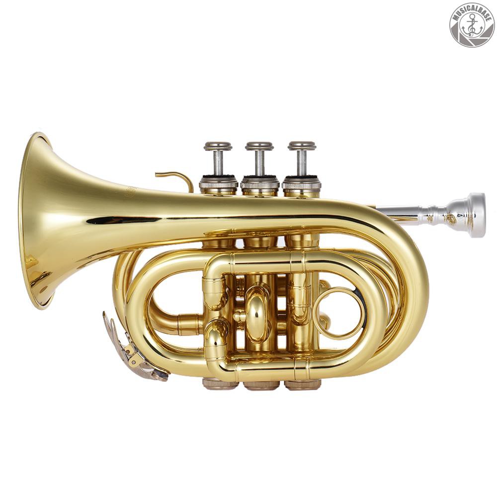 Ammoon Mini Pocket ทรัมเป็ต Bb Flat พร้อมถุงมือทําความสะอาด