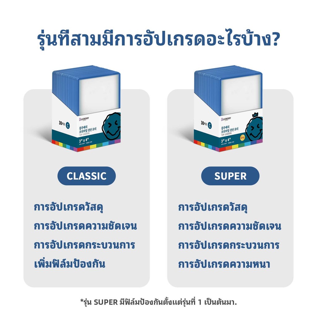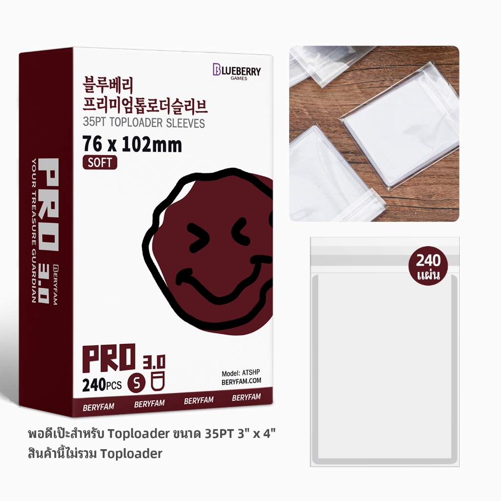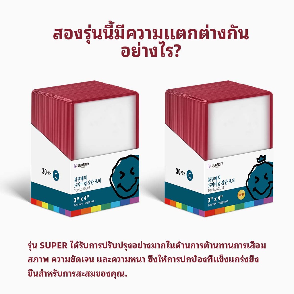 30ชิ้น Blueberry ขอบสีสัน Toploader ใส่การ์ด 35pt ท็อปโหลด Topload เฟรมการ์ด BERYFAM ECOHAIR