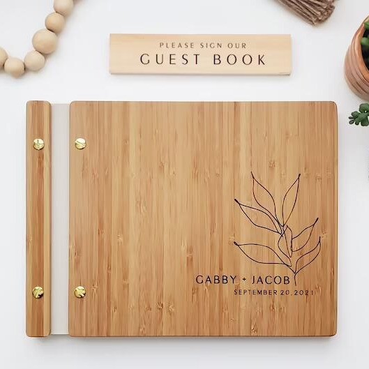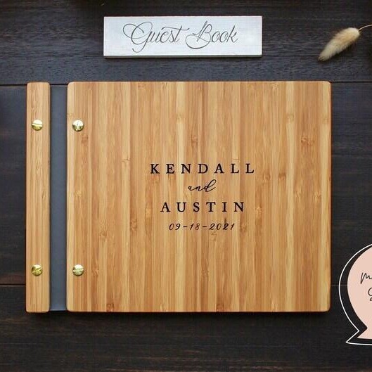 [ที่กําหนดเอง] หนังสือแขกงานแต่งงาน, อัลบั้มภาพงานแต่งงานของขวัญที่กําหนดเองเจ้าสาวและเจ้าบ่าวไม้คราฟท์สมุดเยี่ยมงานแต่งงาน