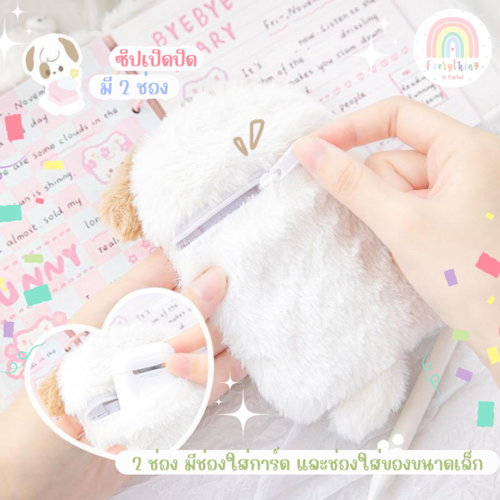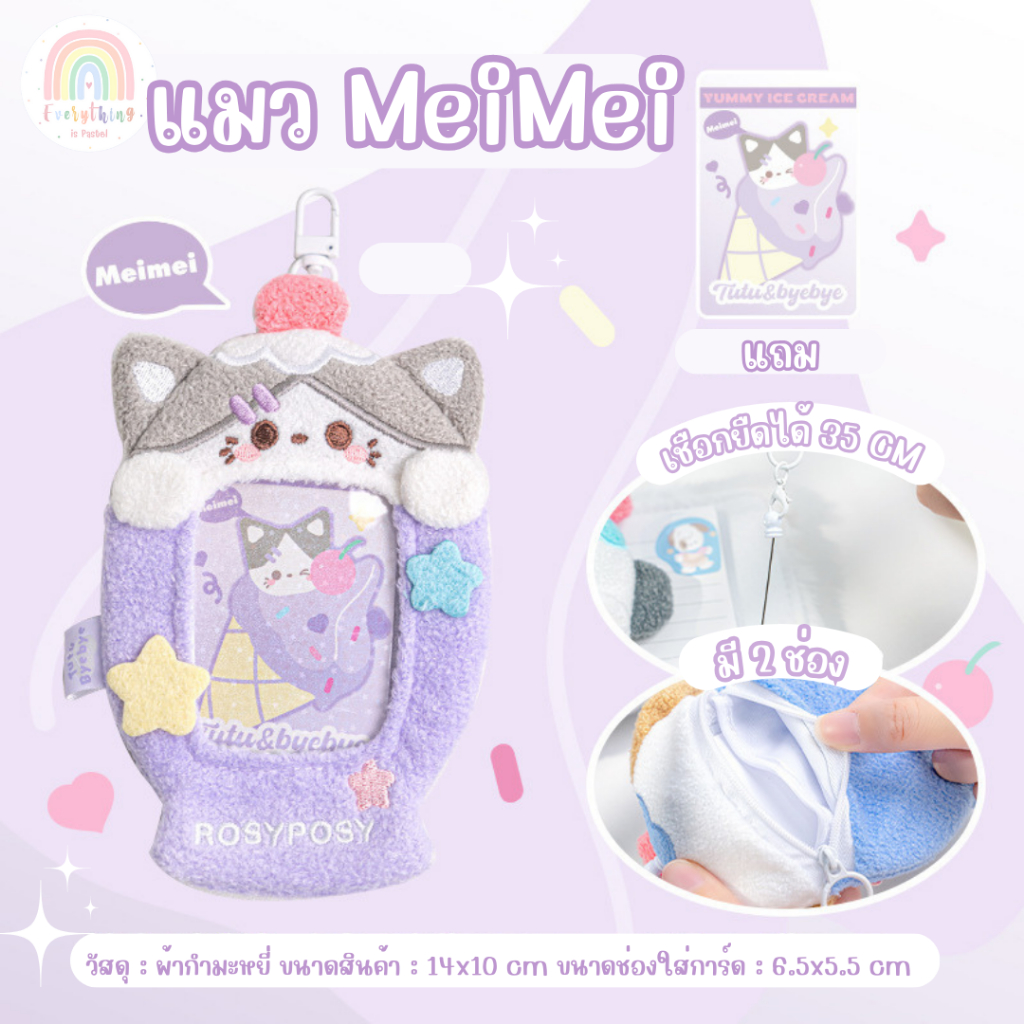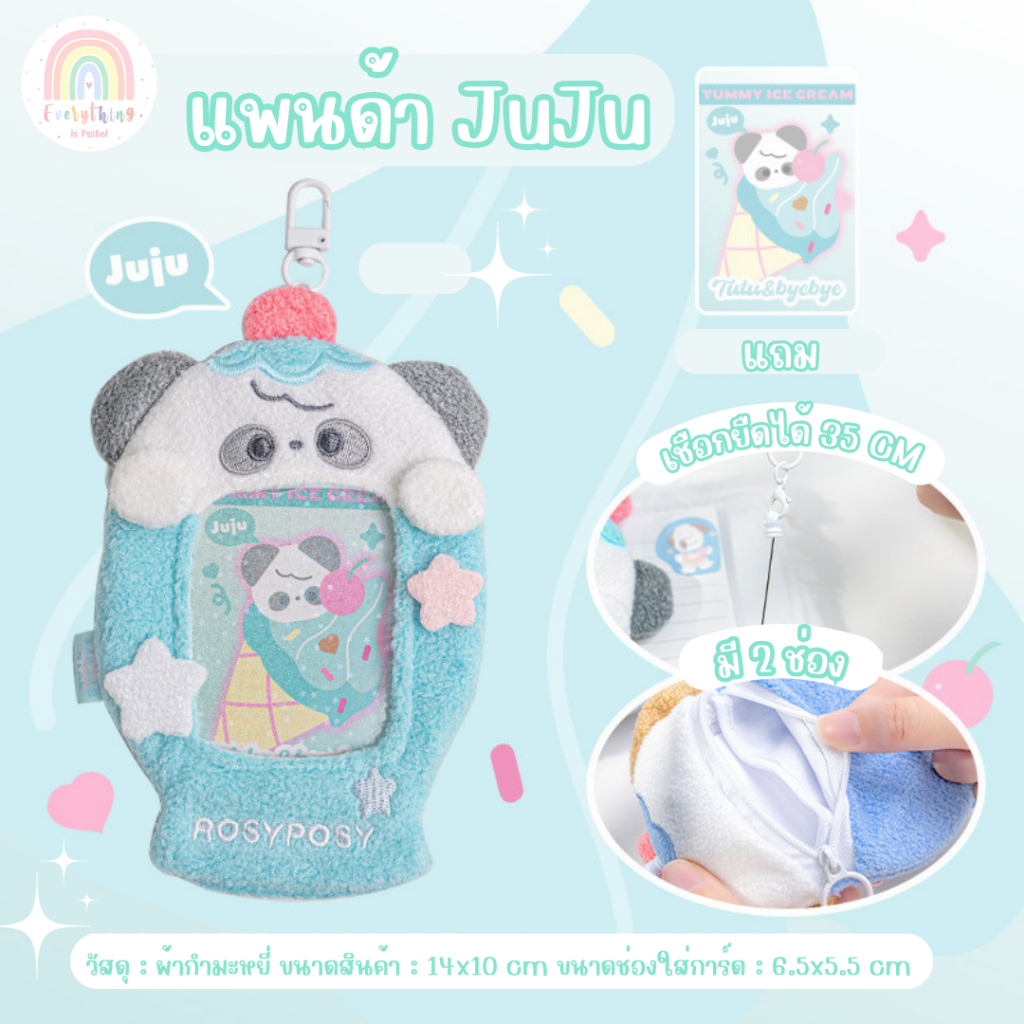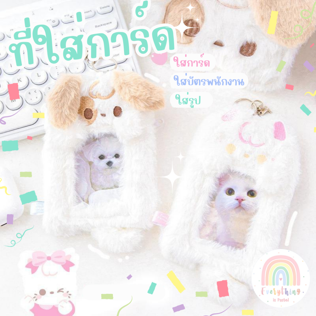 RosyPosy ที่ใส่บัตร การ์ด เฟรมการ์ดขนนุ่ม มีกระเป๋าเล็ก สายยางยืด /พร้อมส่ง