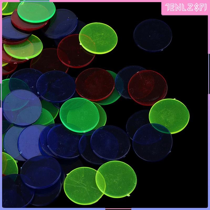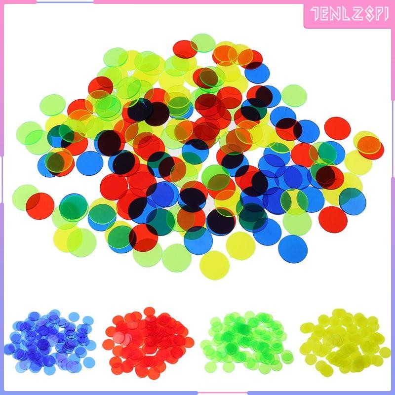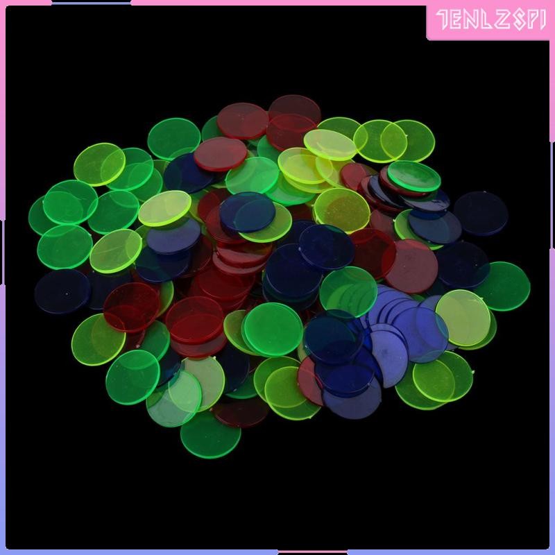 [ ชิปบิงโก 100 ชิ้น (หลากสี) – มาร์กเกอร์โปร่งแสง 1.5 ซม. สําหรับเกมบิงโก นับจํานวน และโทเค็นเกม ชิป สําหรับเกมบิงโก