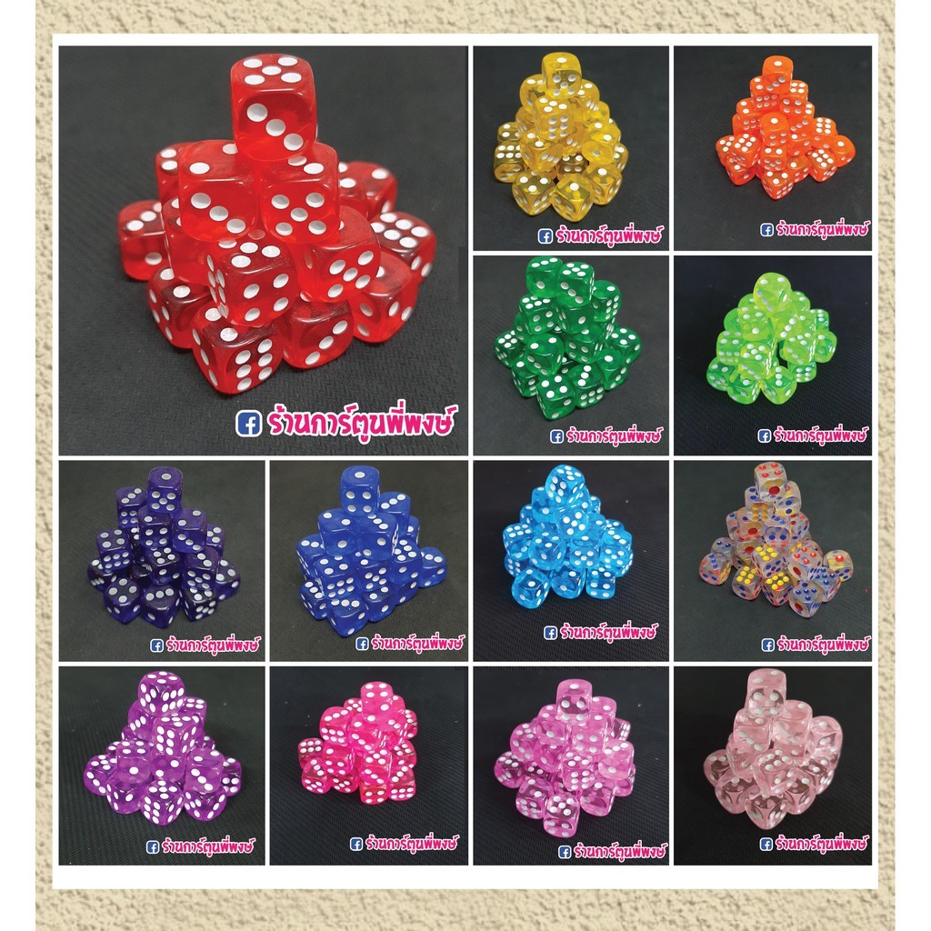 ลูกเต๋า6หน้า โปร่งแสง หลากหลายสี ลูกละ10บาท (อุปกรณ์เสริมการ์ดเกมส์) ลูกเต๋า ขนาด13×13มิล ลูกเต๋าเป่ายิงฉุบ 6หน้า 20×20
