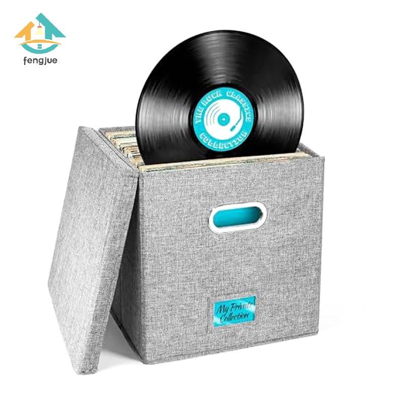 Fengjue 12 นิ้วกล่องเก็บบันทึกไวนิลพร้อมฝาปิดและจับกันฝุ่นมีสไตล์และใช้งานได้จริง LP บันทึกสําหรับบันทึก TH