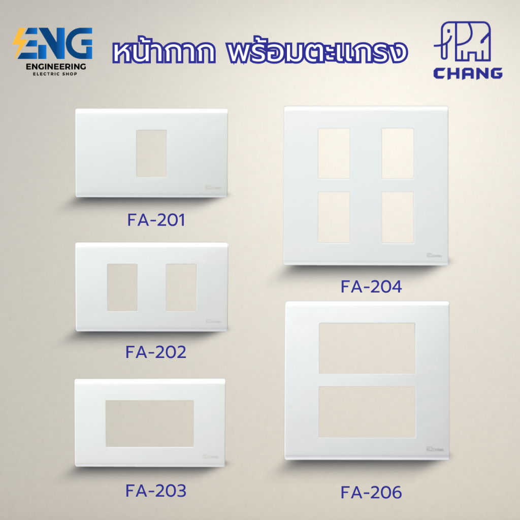 Changปลั้กไฟและสวิตซ์และหน้ากาก รุ่น Y Series ยี่ห้อ Changสีขาวขอบเหลี่ยม