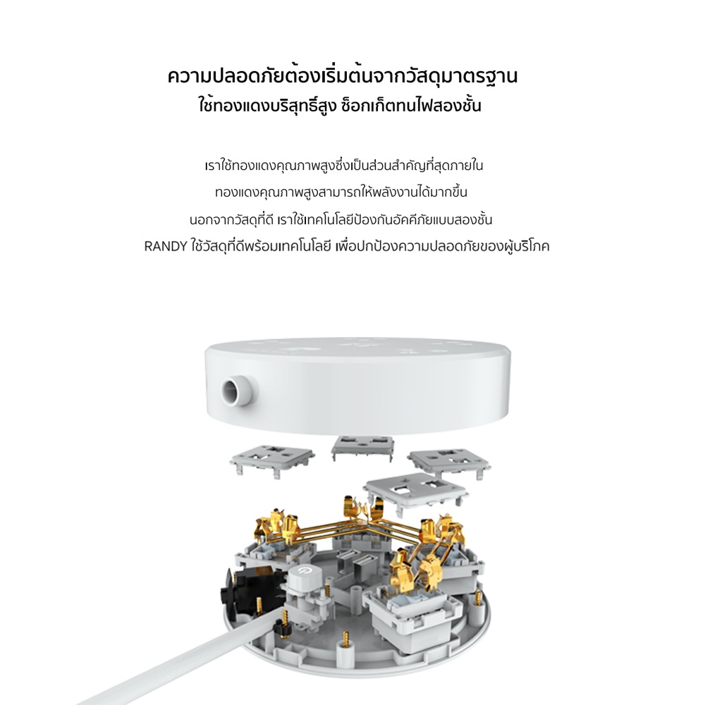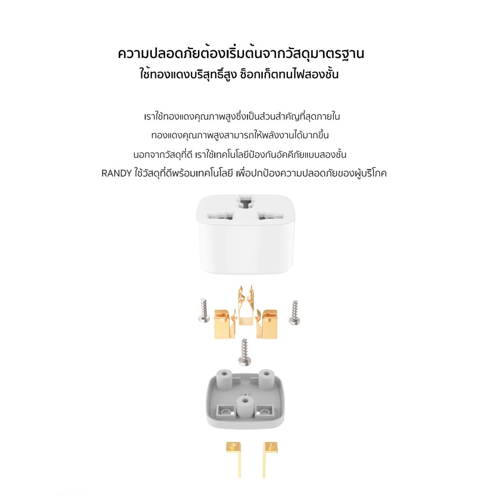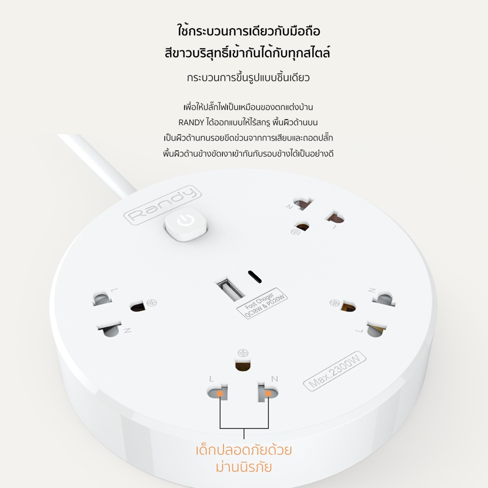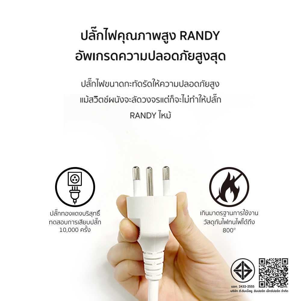 Randy Fast Charger PD20W QC18W ปลั๊กไฟ มอก. ความยาว 2 เมตร พร้อมพอร์ต USB+รองรับการชาร์จ IPAD ได้ รับประกัน 2 ปี