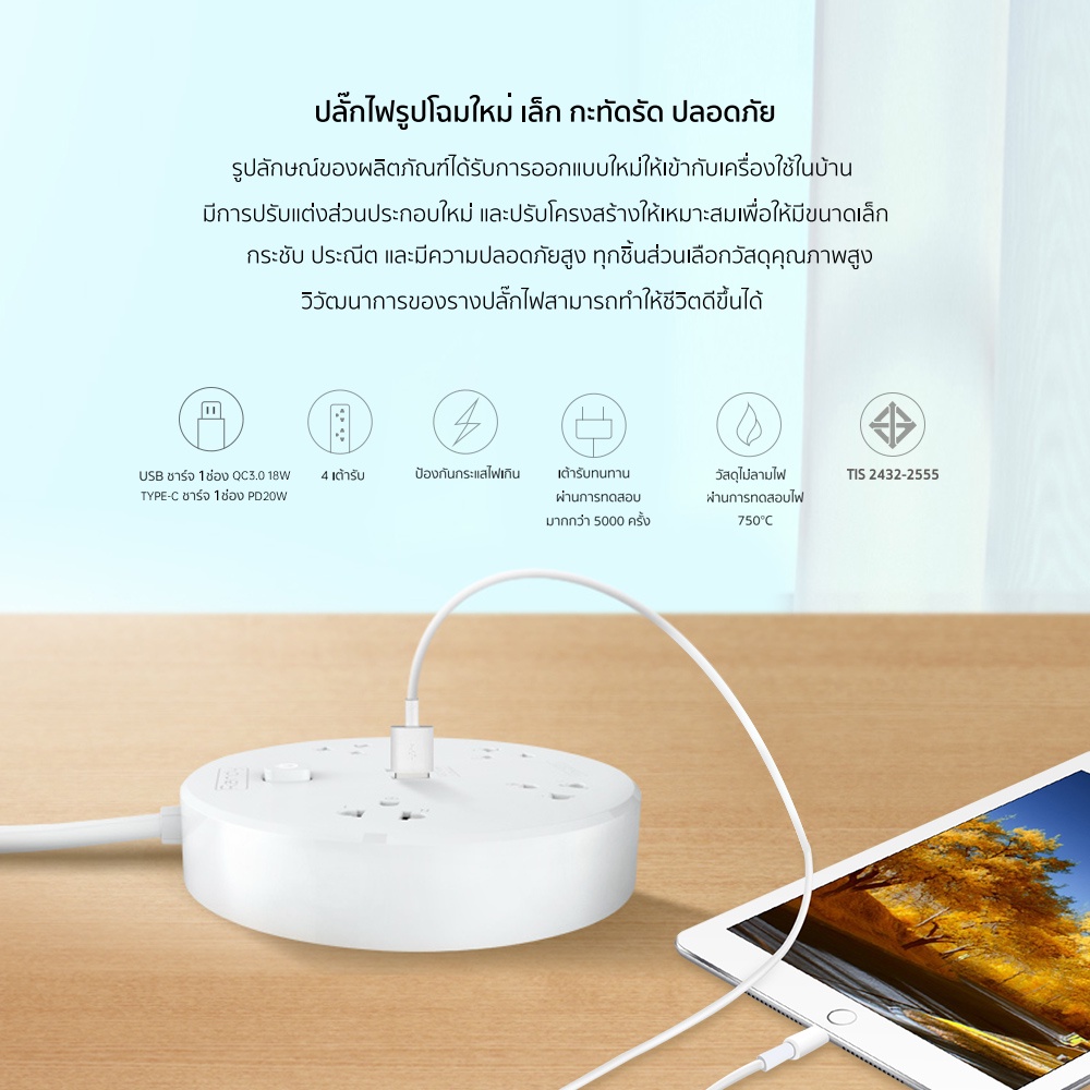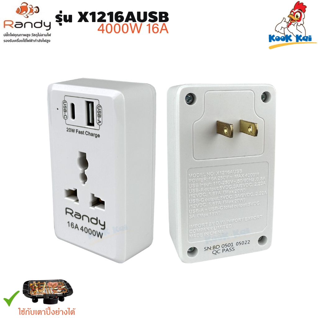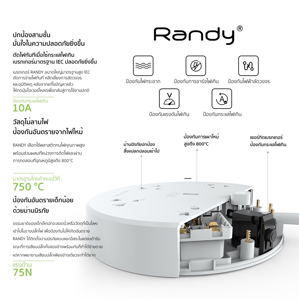 Randy Fast Charger PD20W QC18W ปลั๊กไฟ มอก. ความยาว 2 เมตร พร้อมพอร์ต USB+รองรับการชาร์จ IPAD ได้ รับประกัน 2 ปี