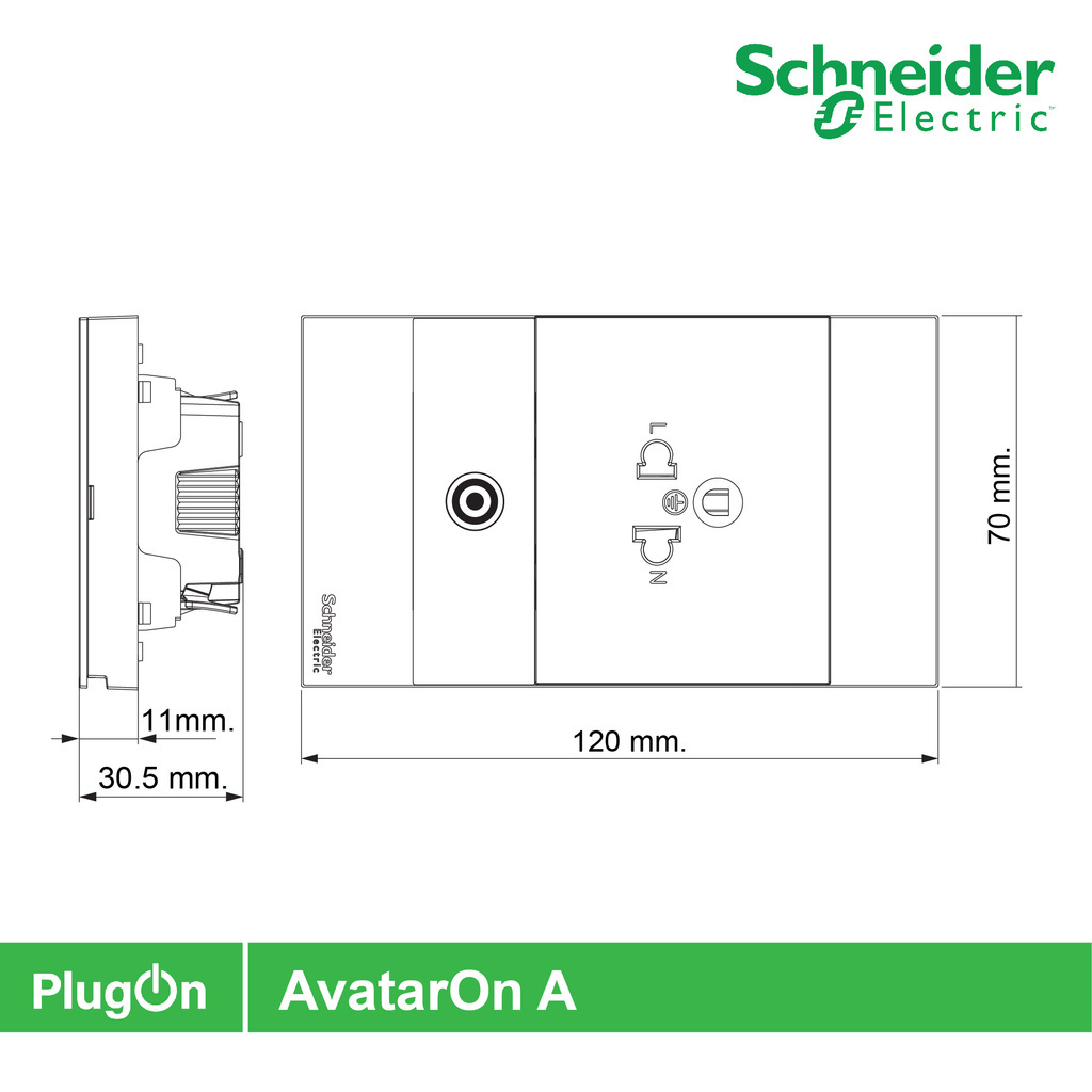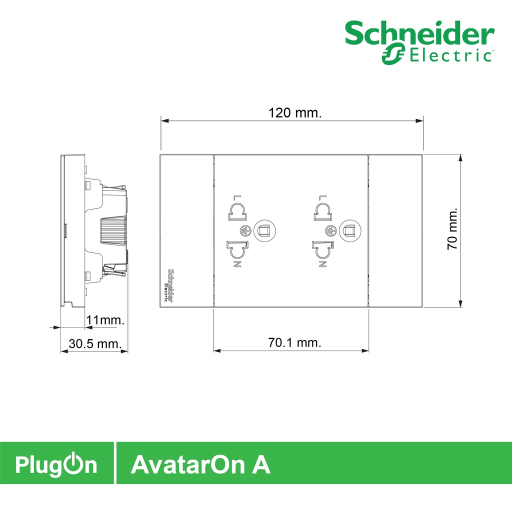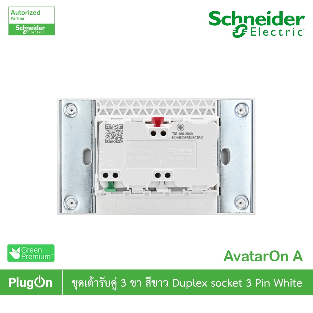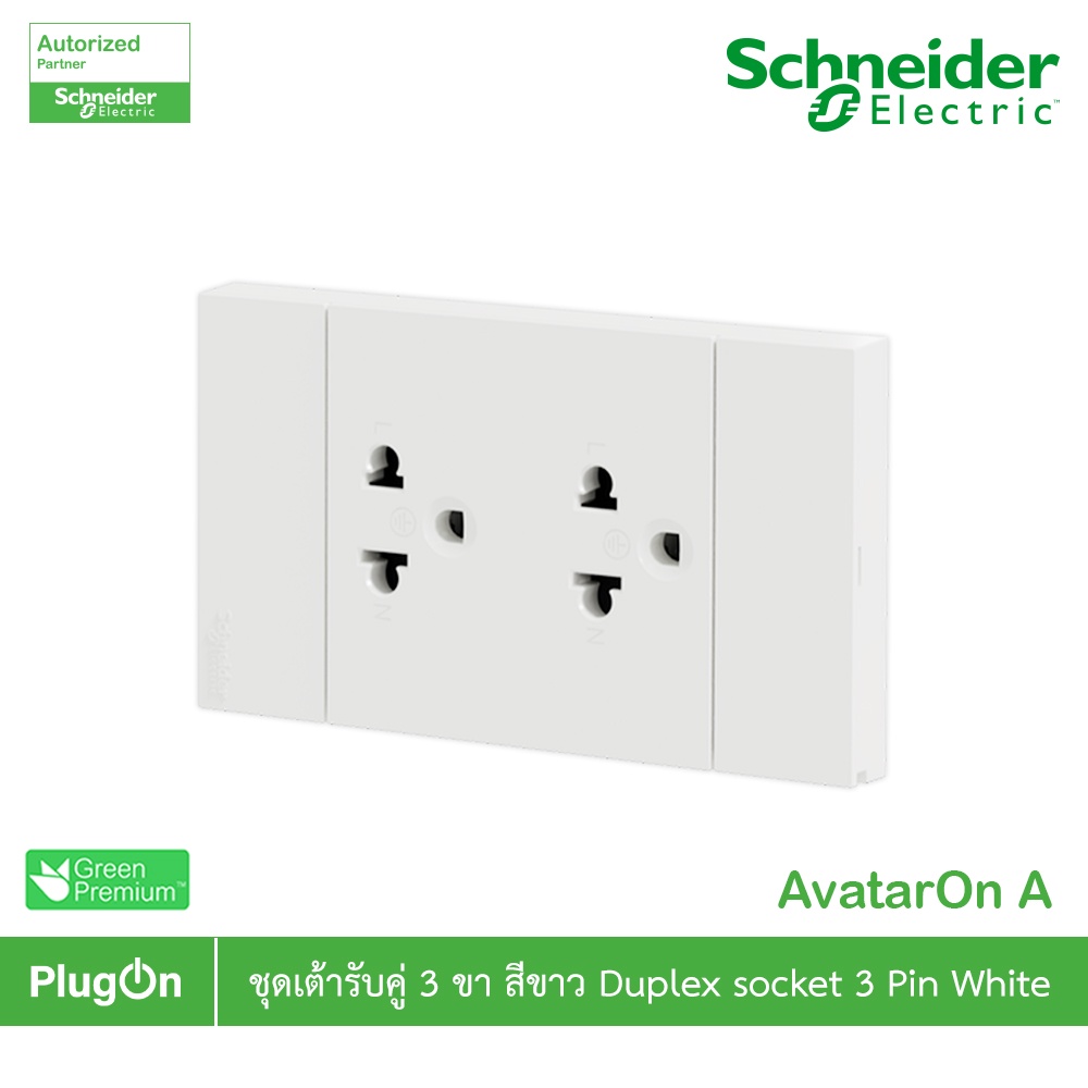 Schneider Electric A70426UST_WE ชุดเต้ารับคู่ 3 ขา มีม่านนิรภัยสีขาว รุ่น AvatarOn A | PlugOn