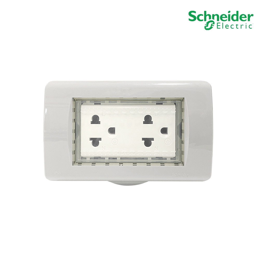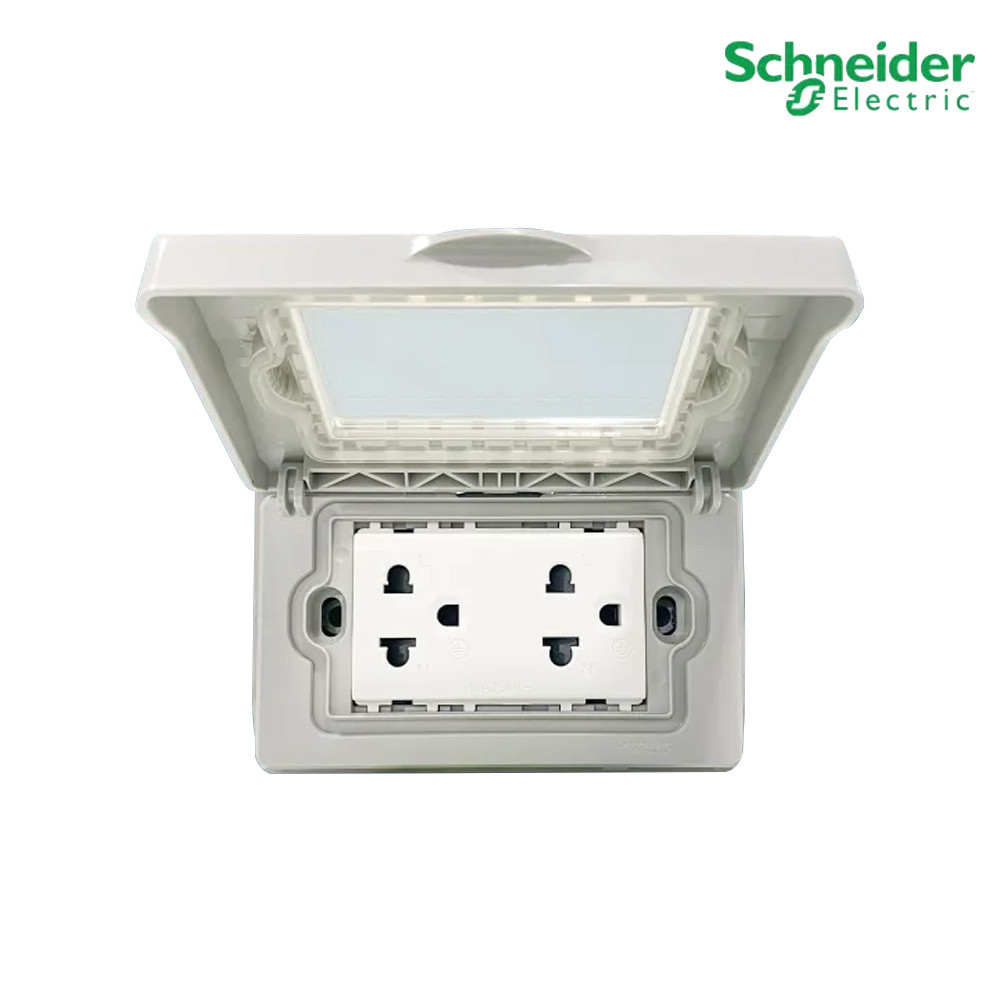 Schneider ชุดฝาครอบกันน้ำ IP55 พร้อมกล่อง สีเทา + เต้ารับคู่ 3ขา ขนาด 3 ช่อง รุ่น Concept
