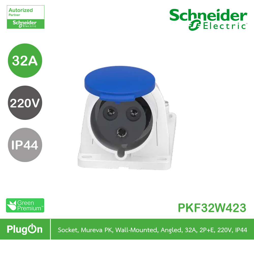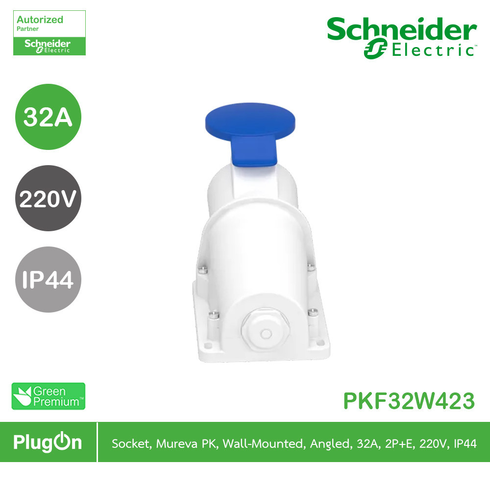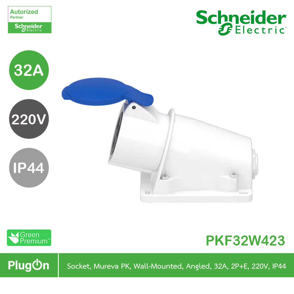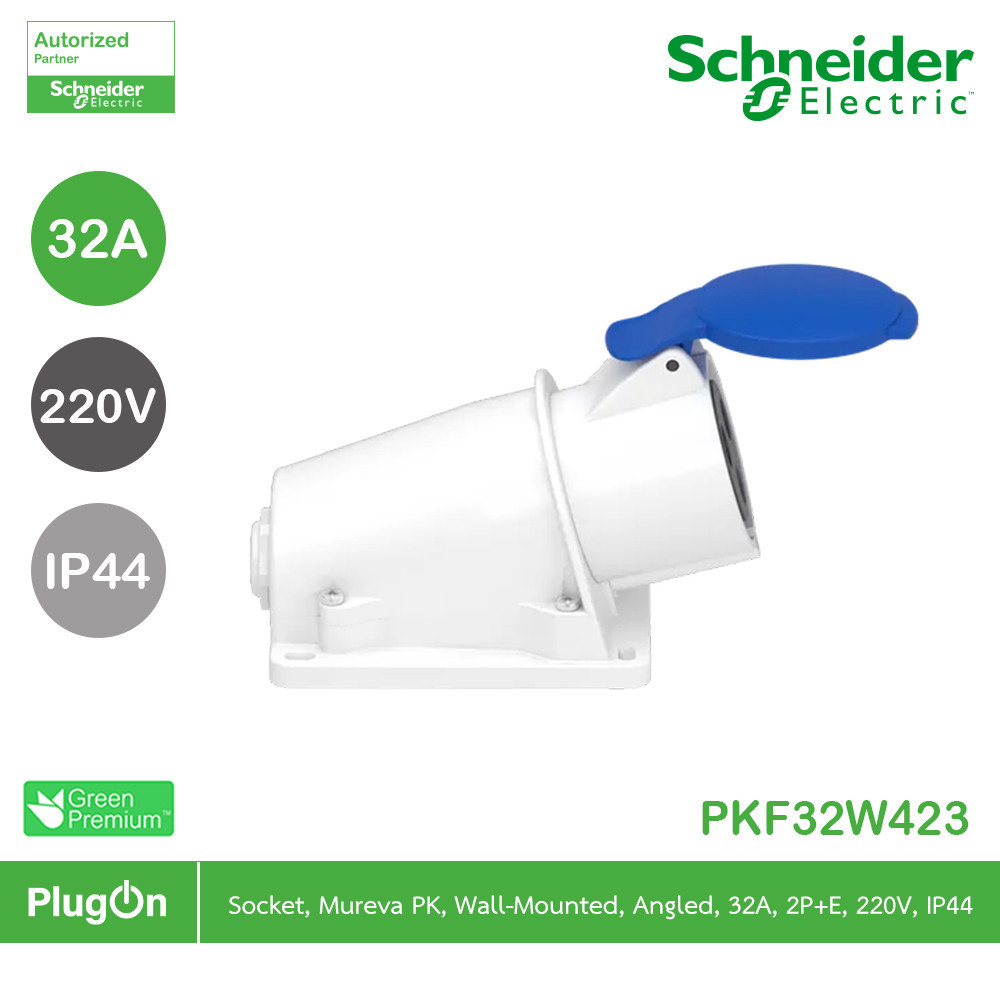 Schneider Electric Socket Mureva PK wall-mounted angled 32A 2P+E 220V IP44 l PKF32W423 | PlugOn