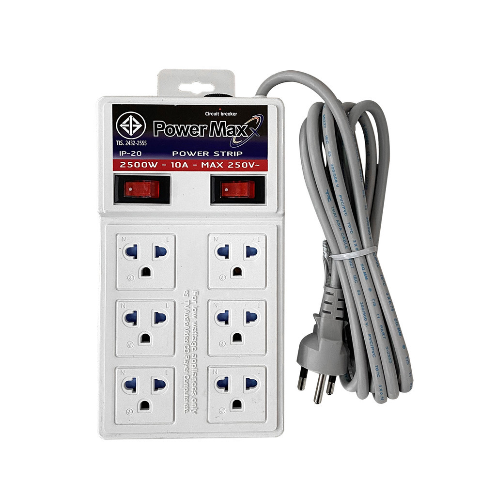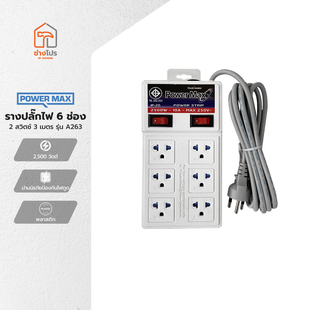 POWER MAX รางปลั๊กไฟ 6 ช่อง 2 สวิตช์ 3 เมตร รุ่น A263 (มอก.) |EA|