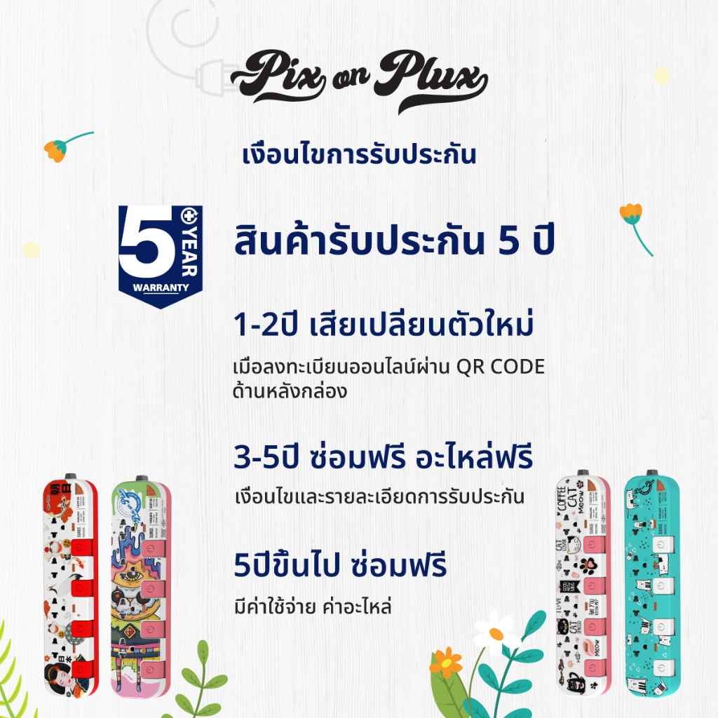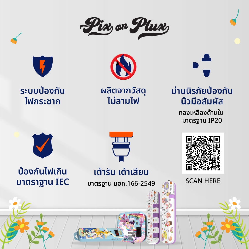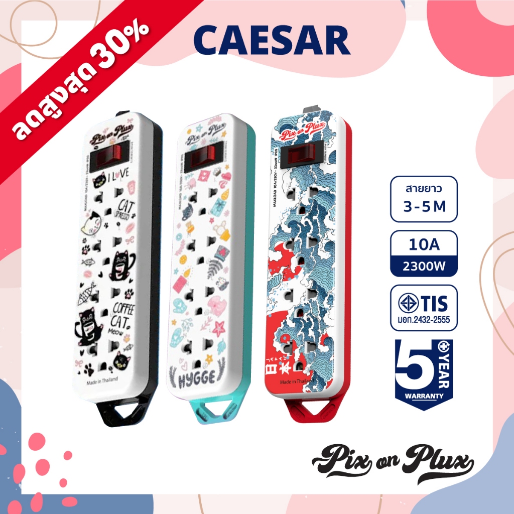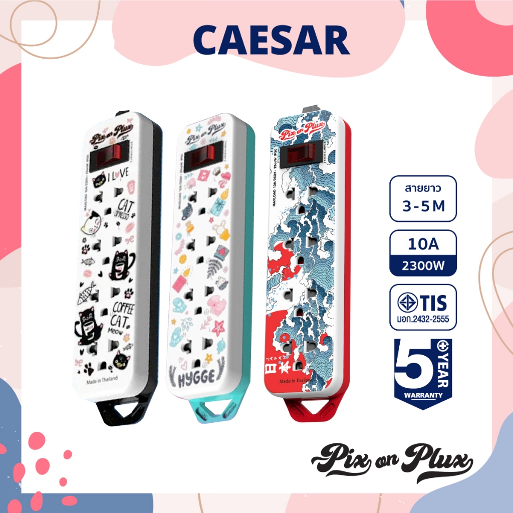 PixonPlux ปลั๊กไฟ “รวมลาย น่ารัก ” 4 ช่อง 1สวิทซ์ ยาว 3 ,5 M ปลั๊กมอก ปลั๊กพ่วง – Caesar