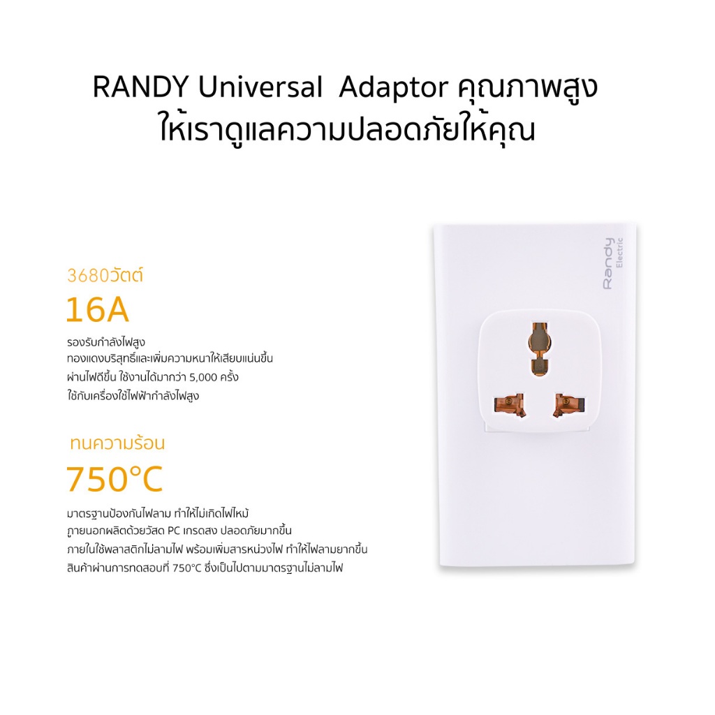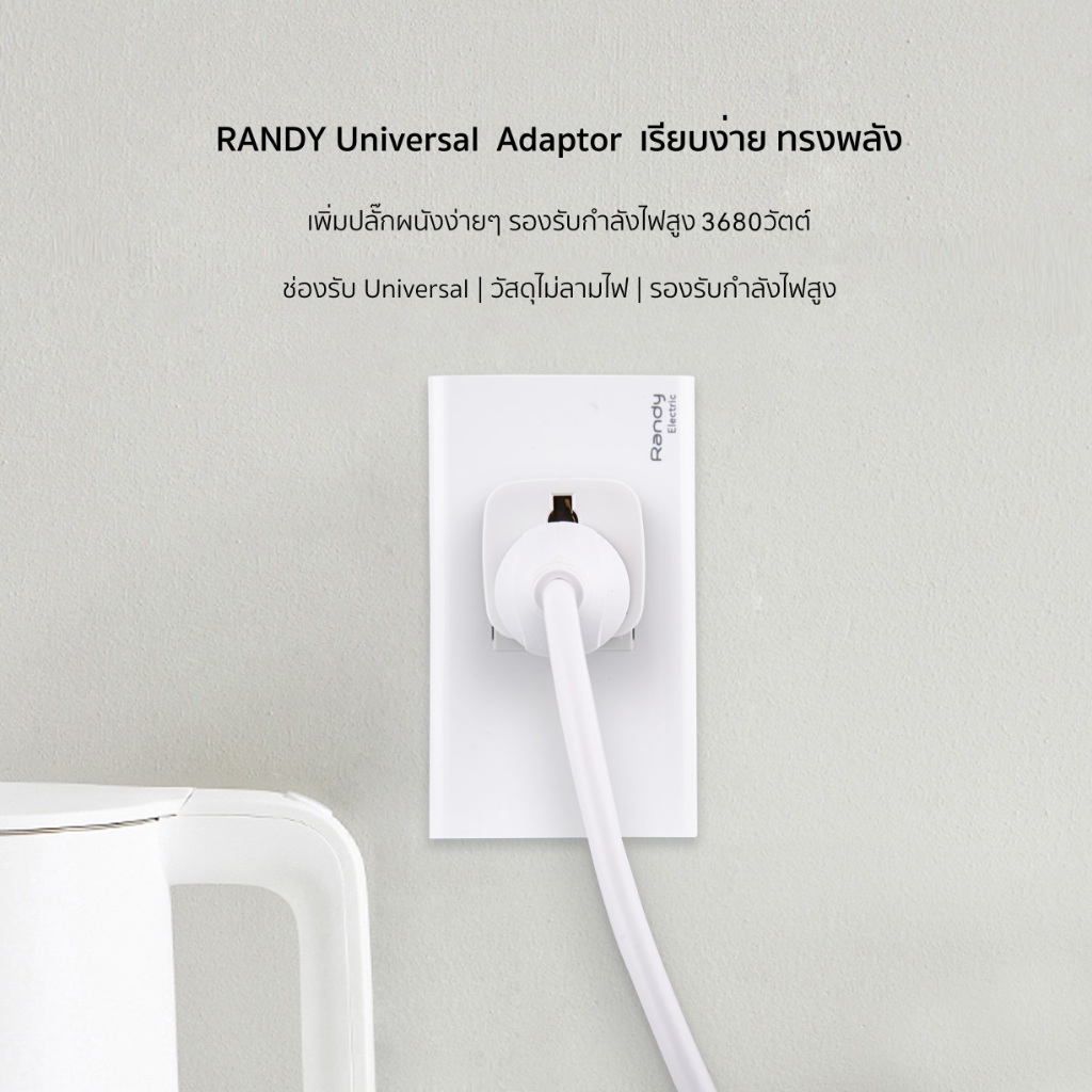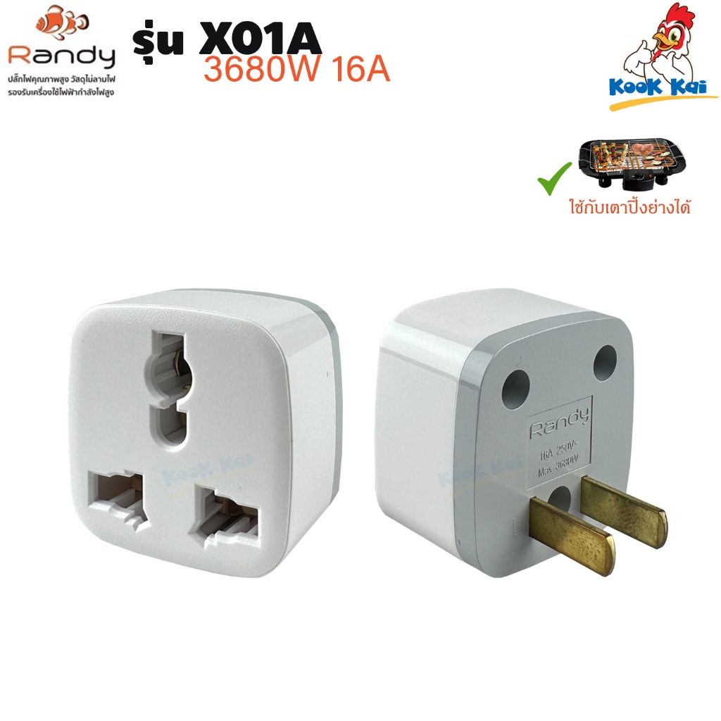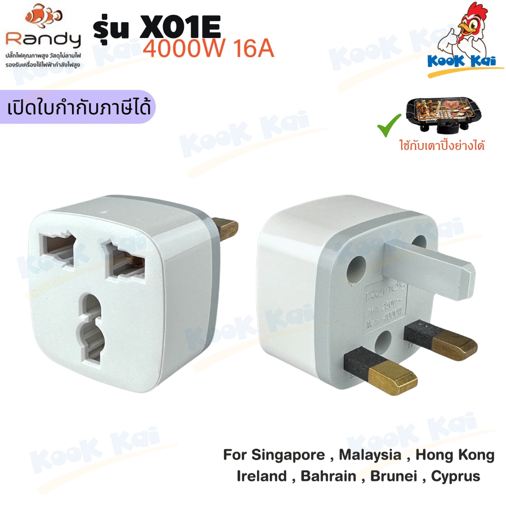 Randy ปลั๊กแปลงไฟ รุ่น X01A 16A 4000W รองรับการใช้งานใน UK และ EU รางปลั๊กไฟทองแดงคุณภาพสูง