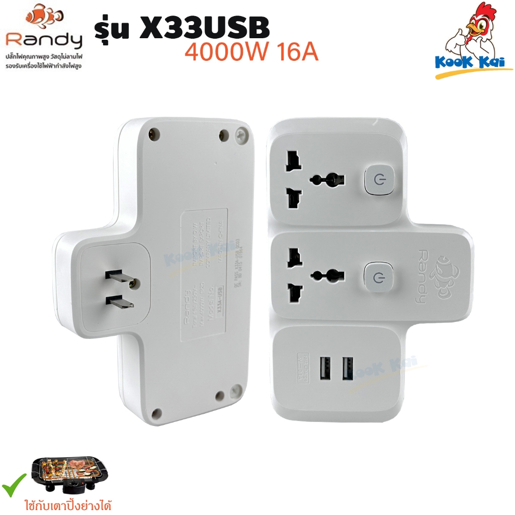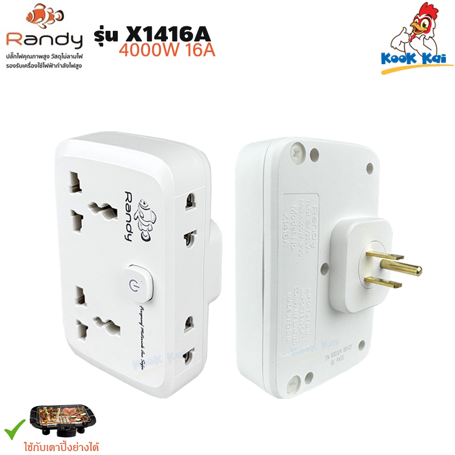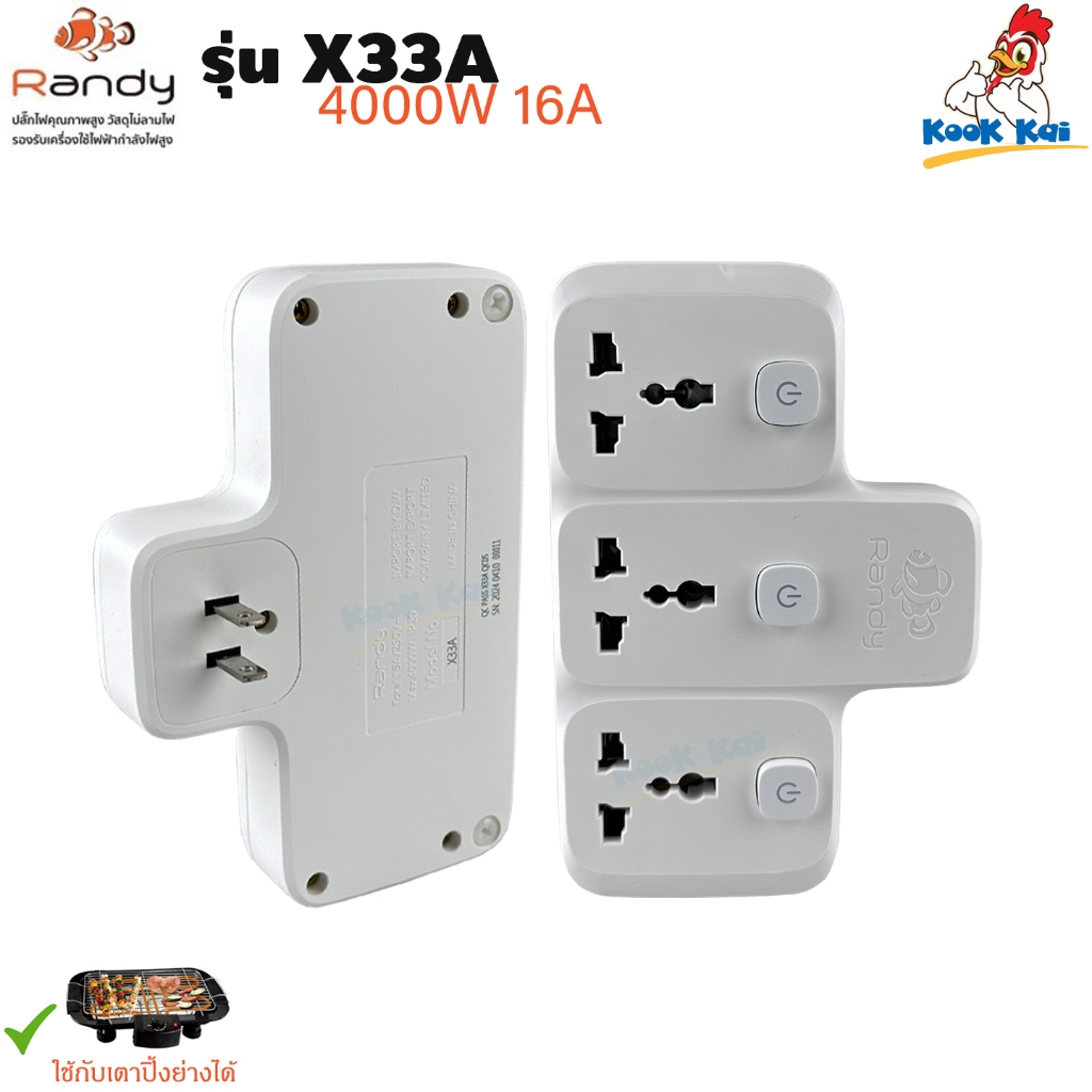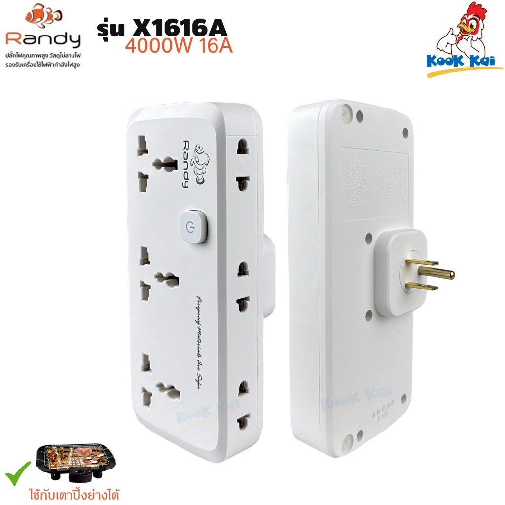 Randy ปลั๊กแปลงไฟ รุ่น X01A 16A 4000W รองรับการใช้งานใน UK และ EU รางปลั๊กไฟทองแดงคุณภาพสูง