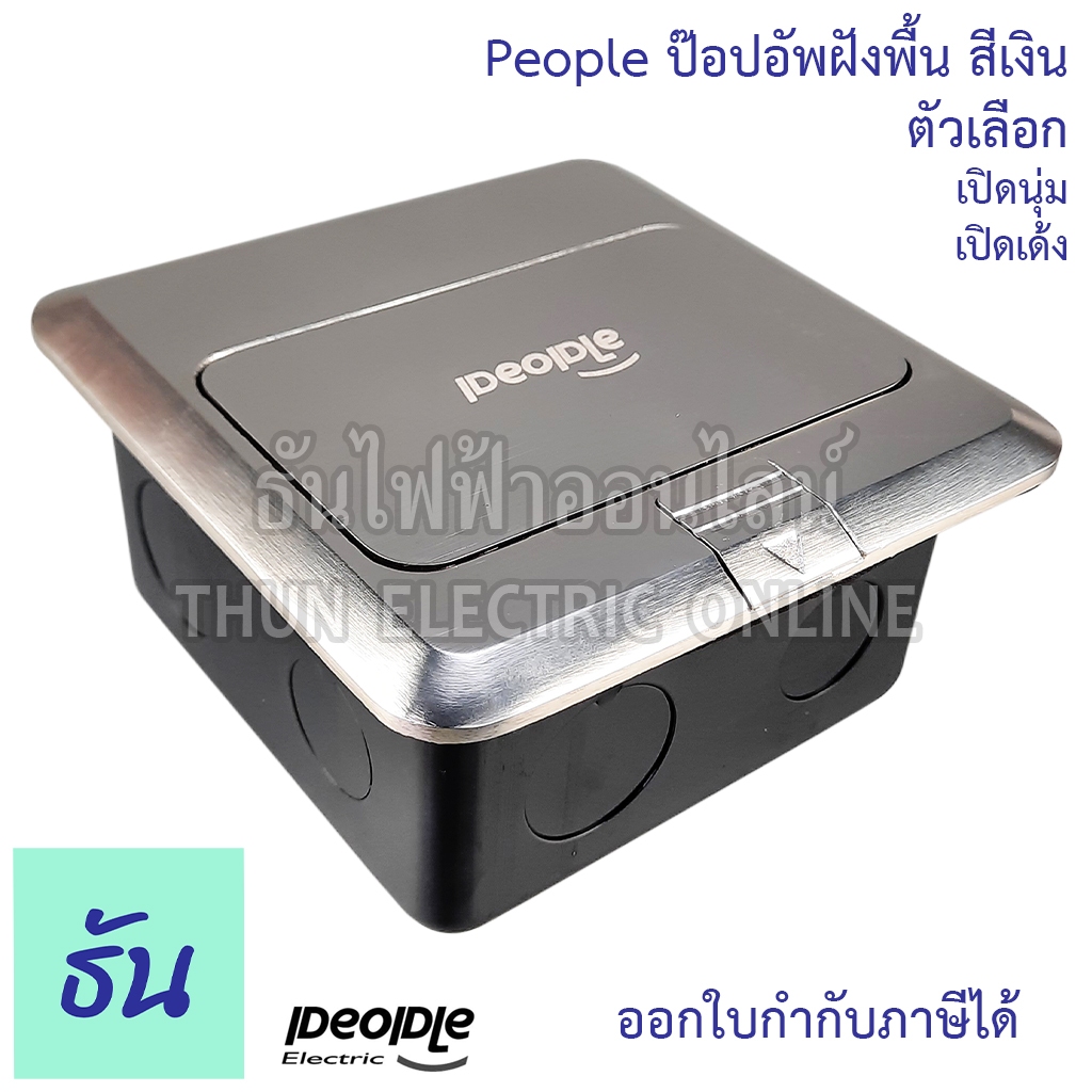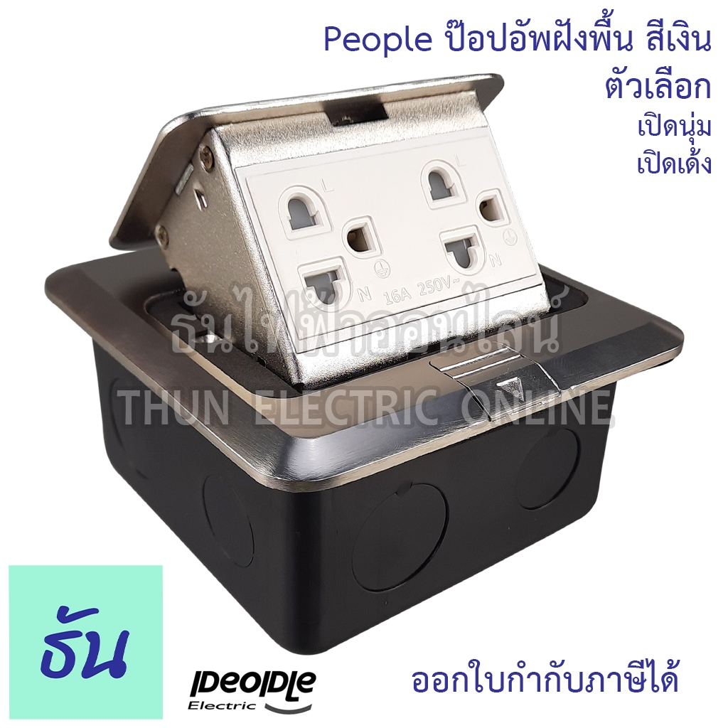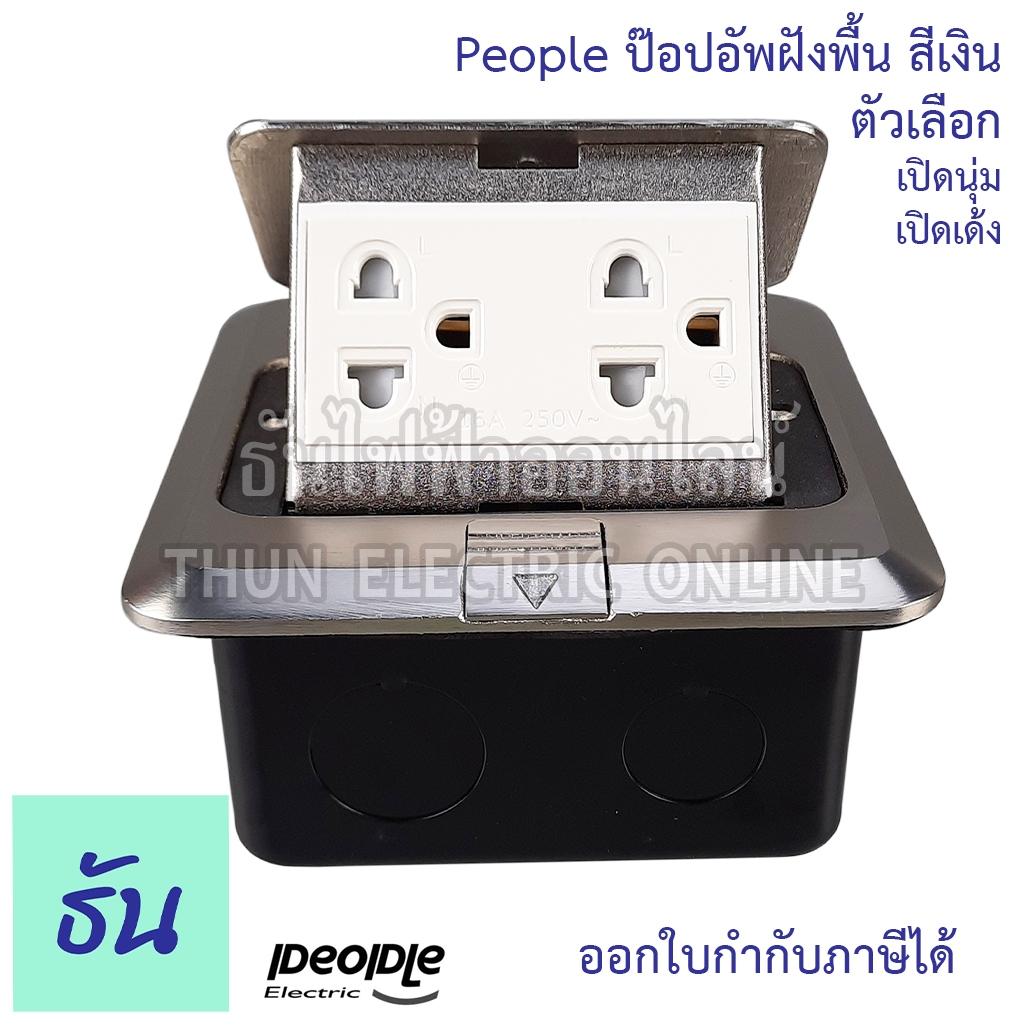 People ปลั๊กฝังพื้น pop up พร้อมปลั๊กกราวด์คู่ สีเงิน A:เปิดนุ่ม B:เปิดเด้ง พร้อมบล๊อก ป๊อปอัพ เต้ารับฝังพิ้น ธันไฟฟ้า