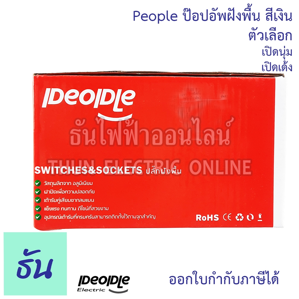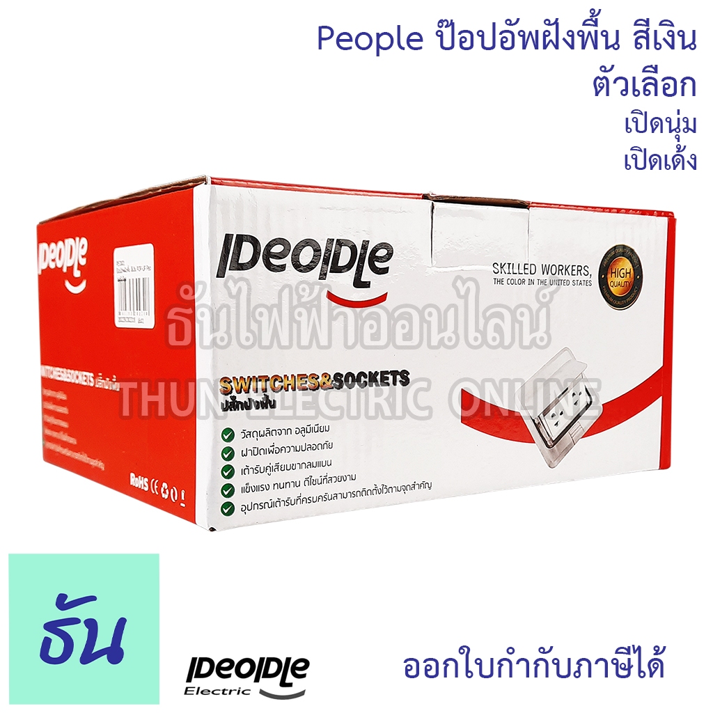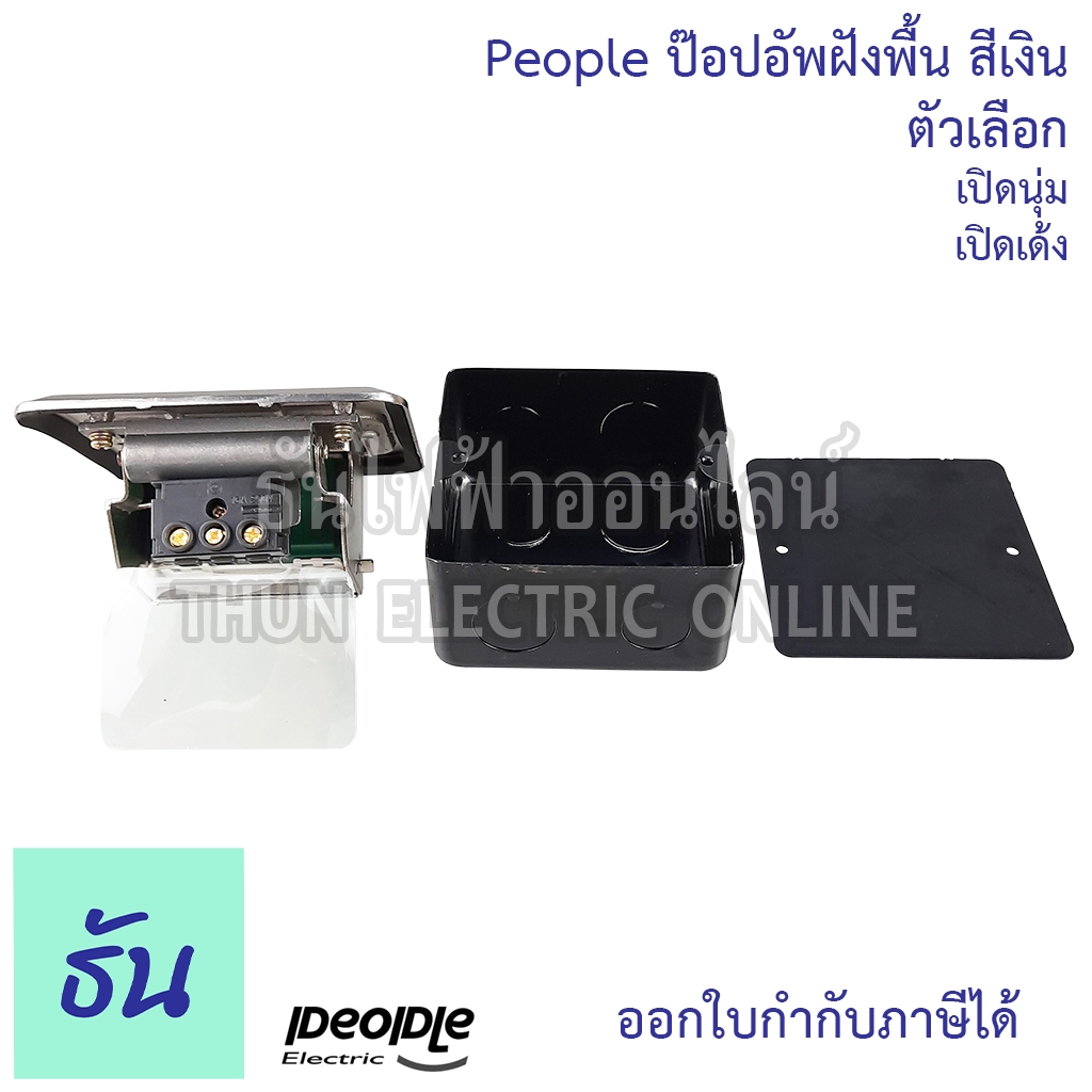 People ปลั๊กฝังพื้น pop up พร้อมปลั๊กกราวด์คู่ สีเงิน A:เปิดนุ่ม B:เปิดเด้ง พร้อมบล๊อก ป๊อปอัพ เต้ารับฝังพิ้น ธันไฟฟ้า
