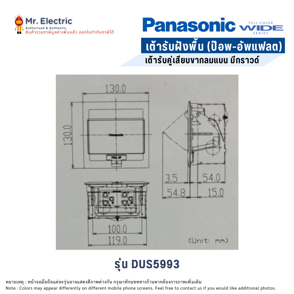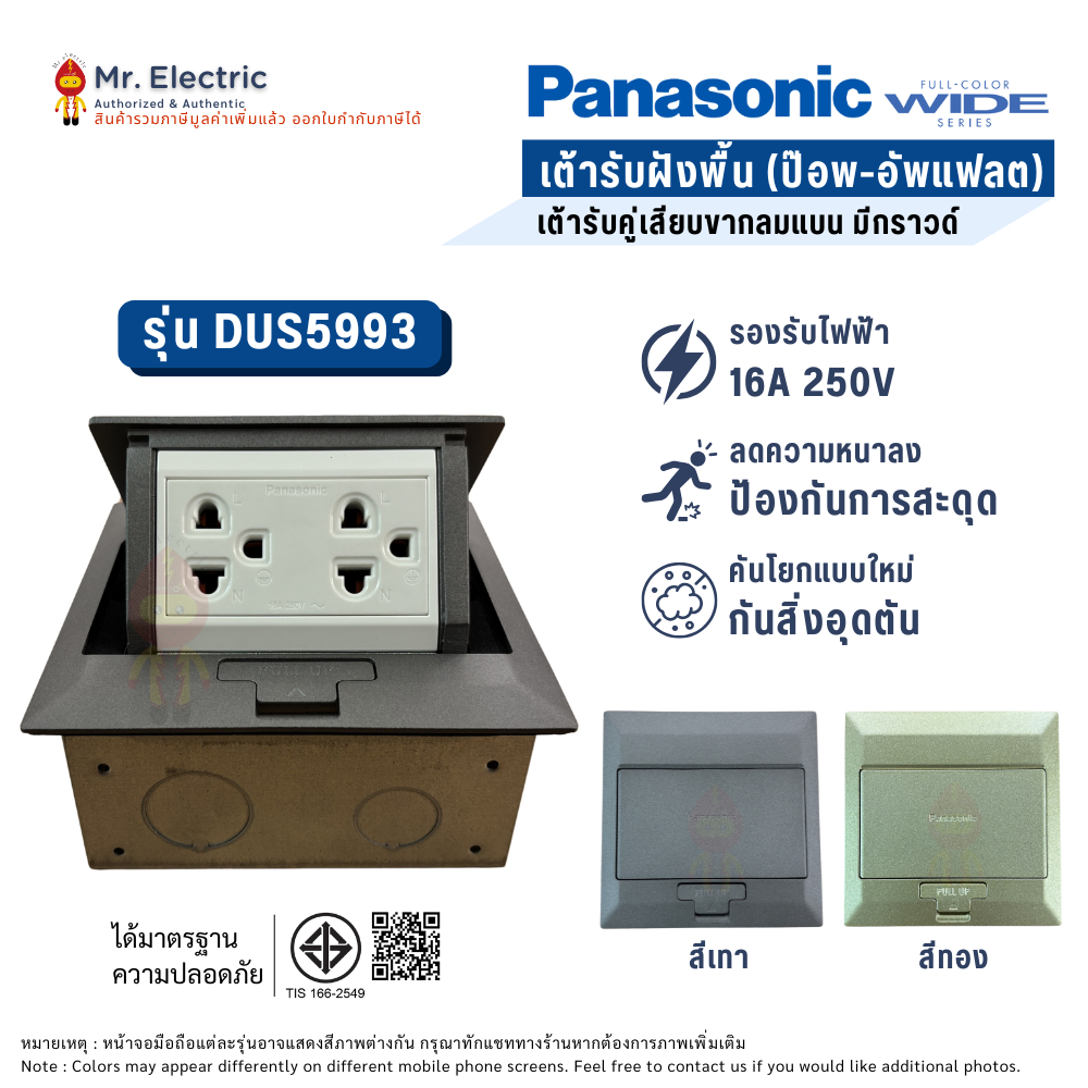 Panasonic เต้ารับฝังพื้นปลั๊กคู่มีกราวด์ ป๊อปอัพ สีเทา DUS5993H สีทอง DUS5993Y