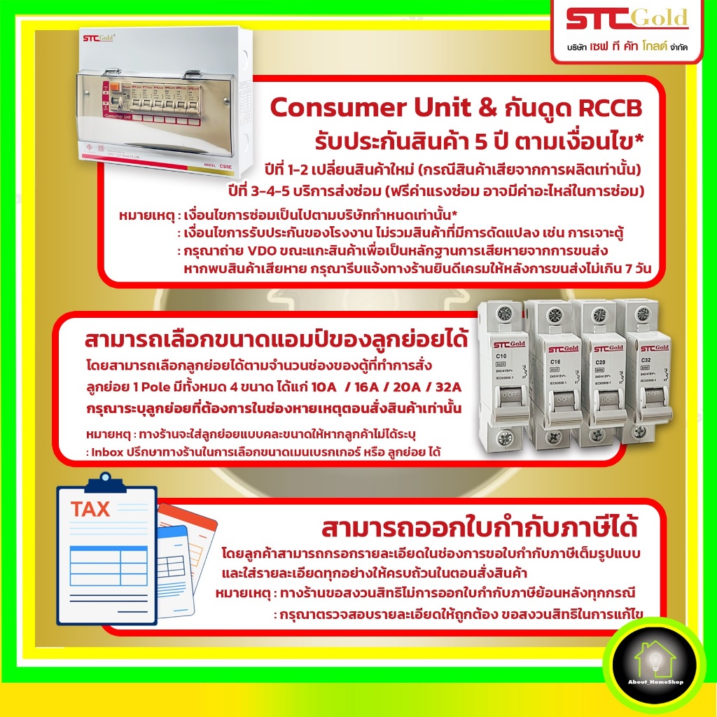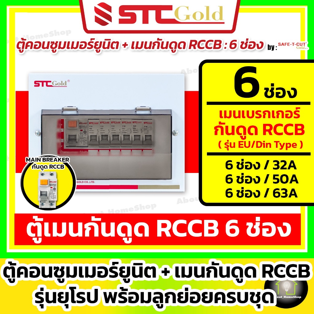 [ 6 ช่อง ] SAFE-T-CUT เซฟทีคัท-โกลด์ ตู้คอนซูเมอร์ยูนิต เมนกันดูด RCCB 6 ช่อง พร้อมลูกย่อยครบชุด
