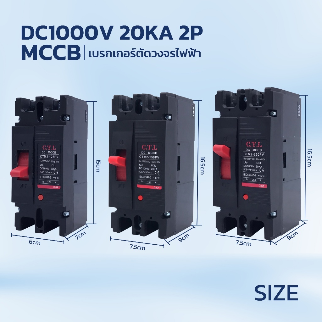 Breaker Battery DC1000V 20KA 2P เบรกเกอร์ MCCB ขนาด 125A/150A/250A แบตเตอรี่เบรกเกอร์