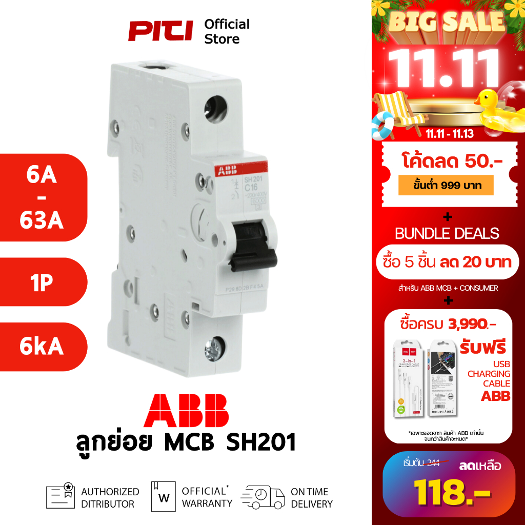 ABB เซอร์กิตเบรกเกอร์ลูกย่อย MCB SH201 (6A – 63A) 1P 6kA Miniature Circuit Breaker