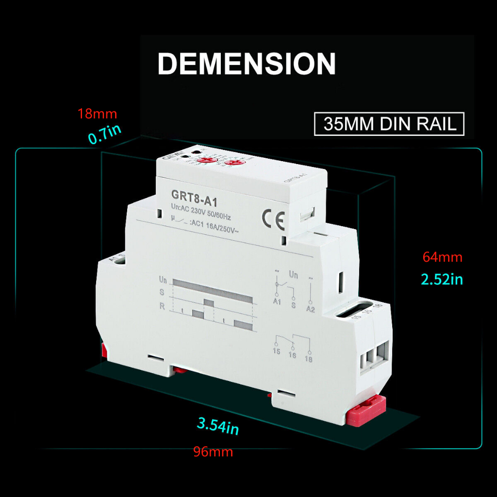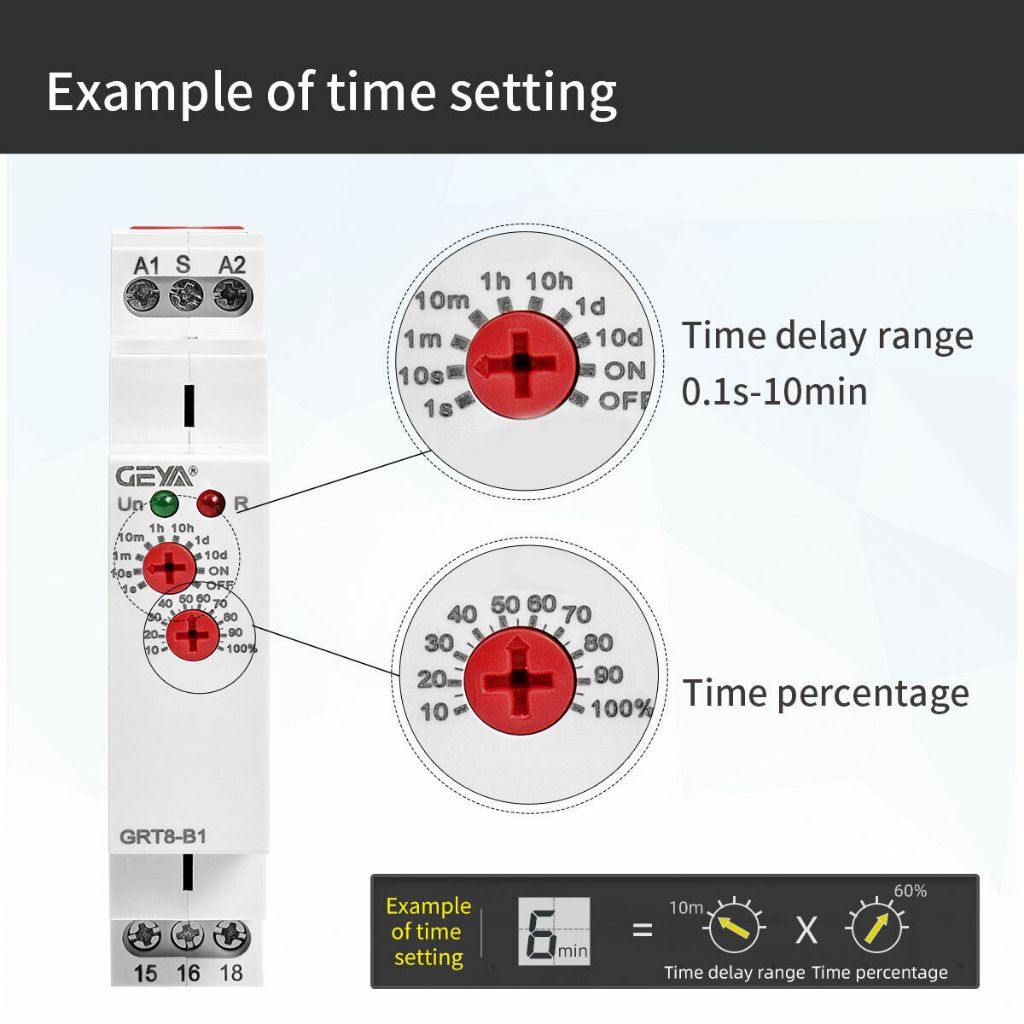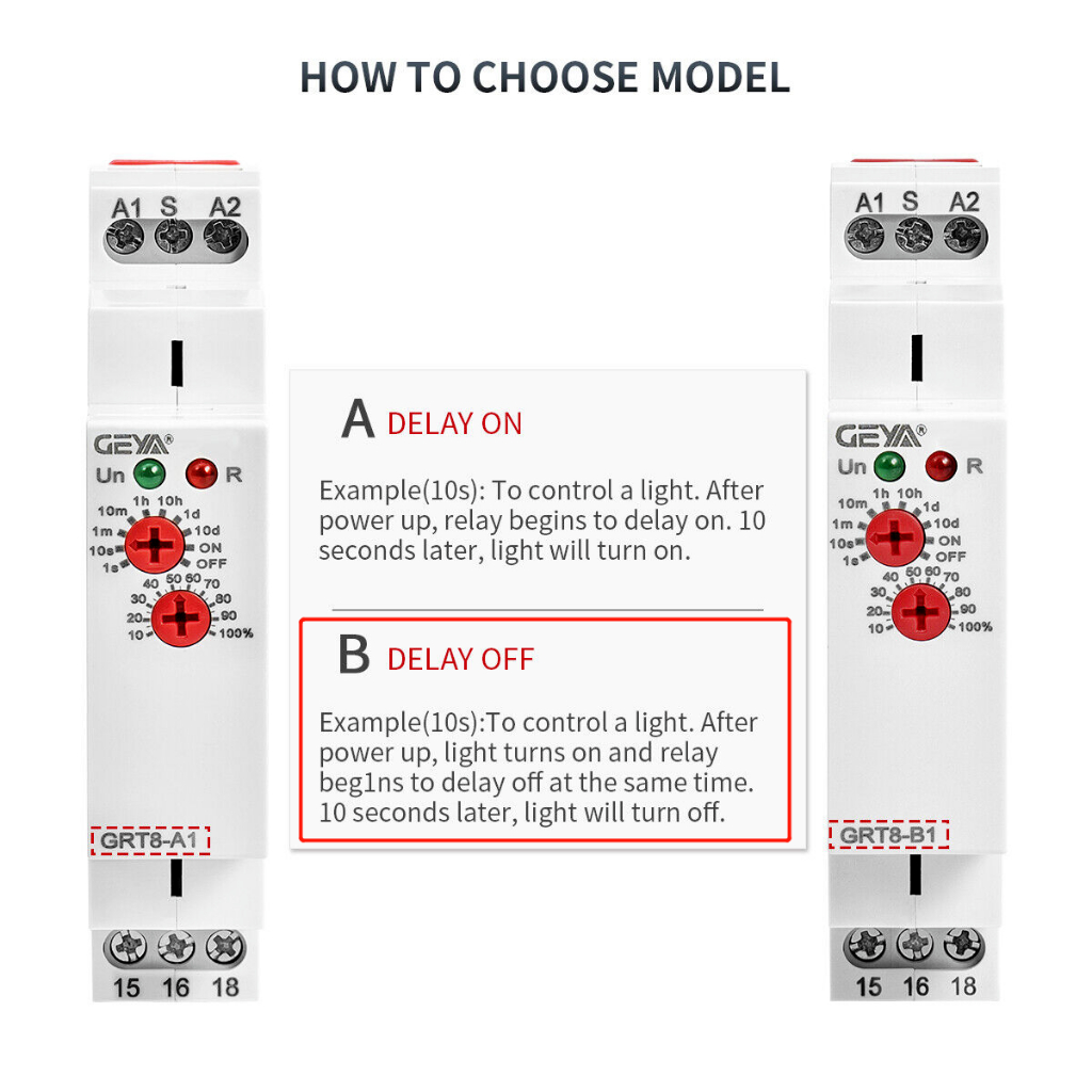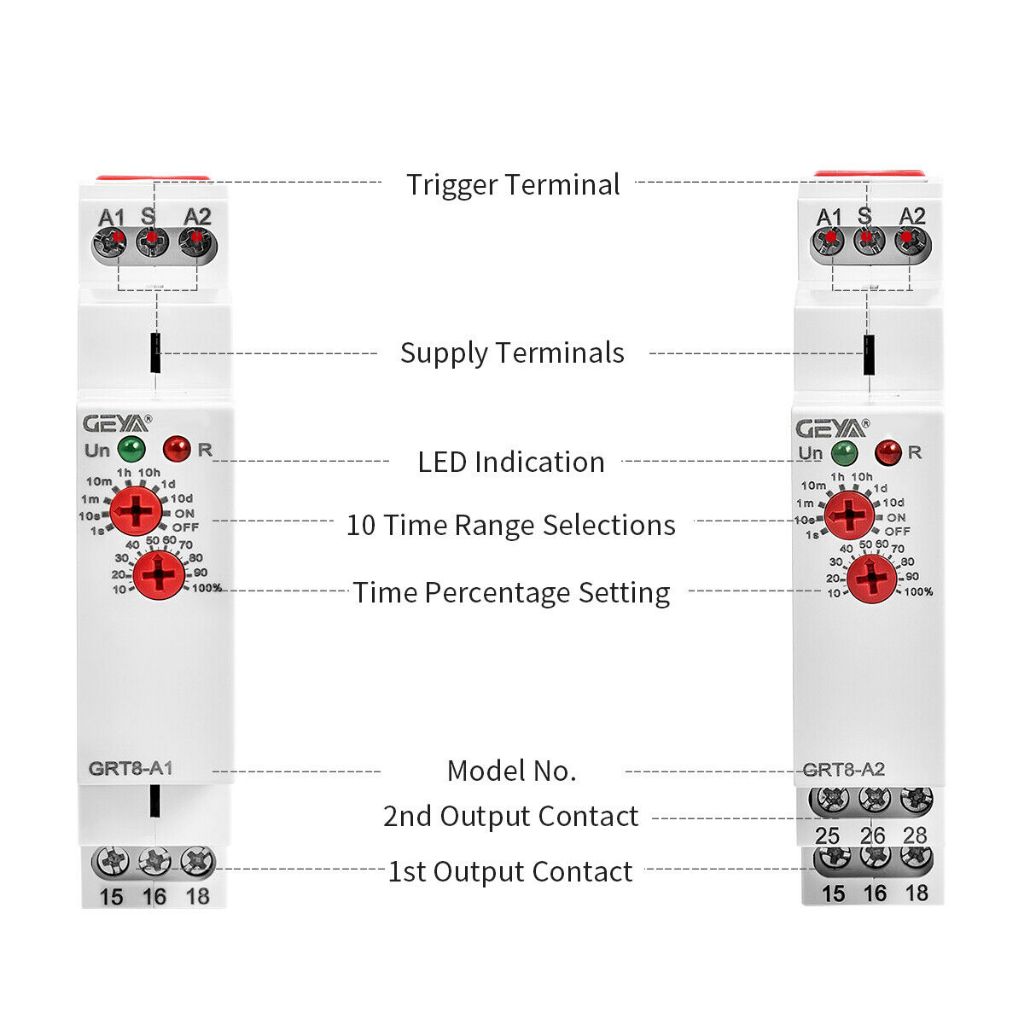 Geya GRT8-B Delay OFF Timer รีเลย์สวิทช์จับเวลา 16A AC/DC 12-240V หรือ AC230V อิเล็กทรอนิกส์ SPDT