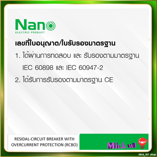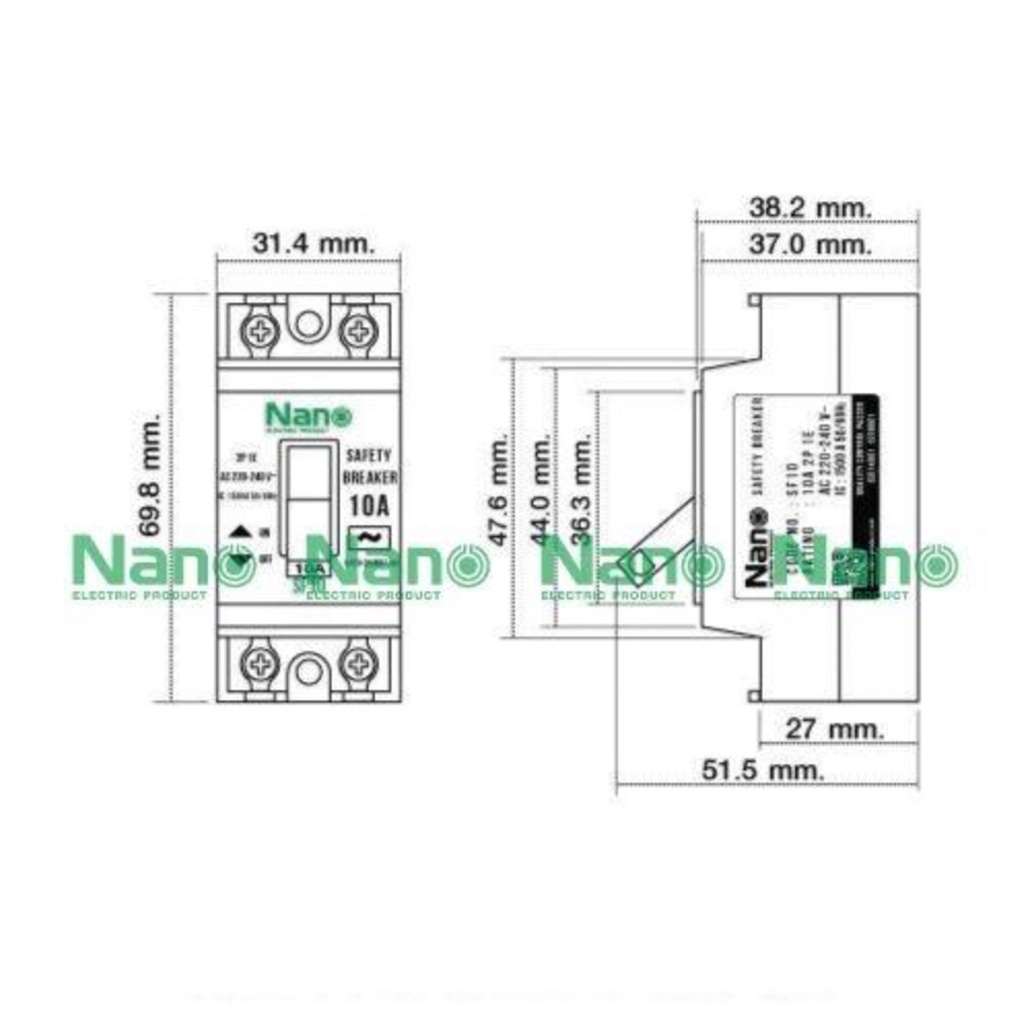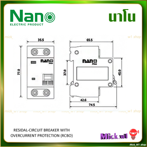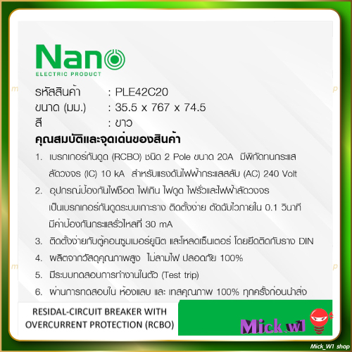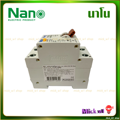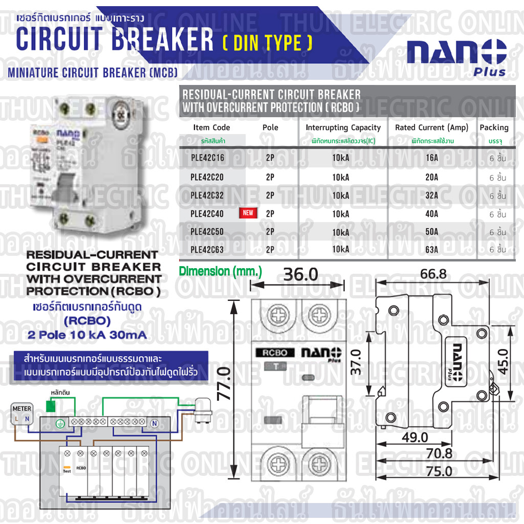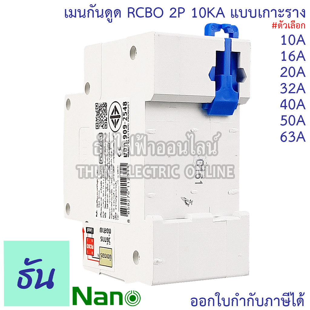 Nano RCBO 2P 10A, 16A, 20A, 32A, 40A, 50A, 63A เมนกันดูด แบบเกาะราง เบรกเกอร์ 2 เฟส PLE42C10 PLE42C16PLE42C16, PLE42C20