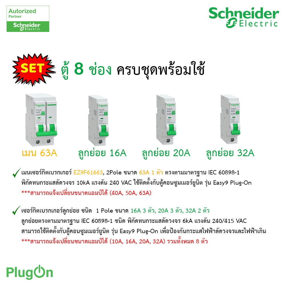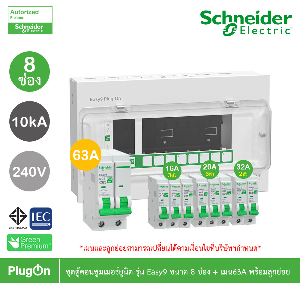 Schneider ชุดตู้คอนชูมเมอร์ยูนิต รุ่น Easy9 Plug-On ขนาด 8 ช่อง + เมนเบรกเกอร์ 63A พร้อมลูกย่อย