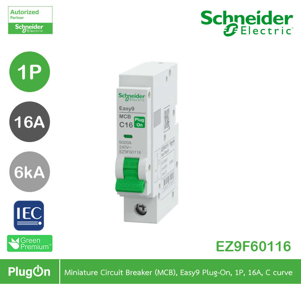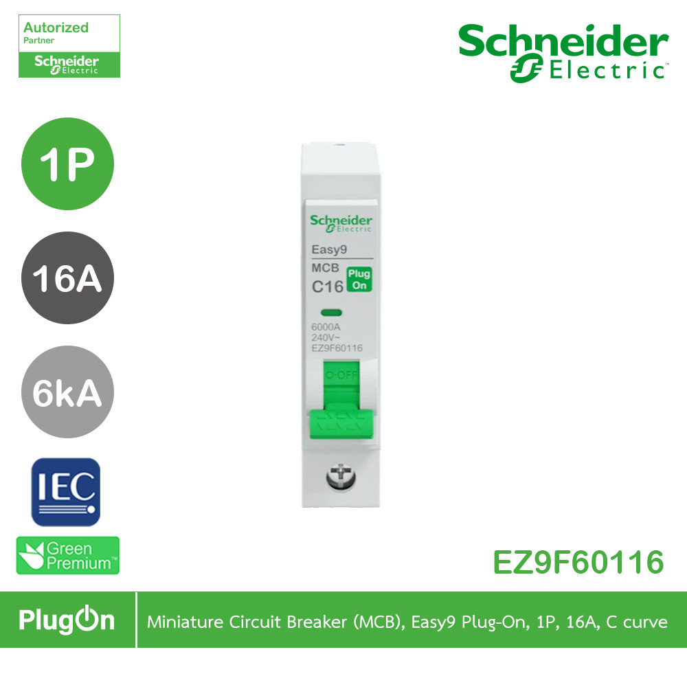 Schneider Electric เซอร์กิตเบรกเกอร์ รุ่น Easy9 Plug-On ขนาด 1P 6kA 16A รหัส EZ9F60116 | PlugOn