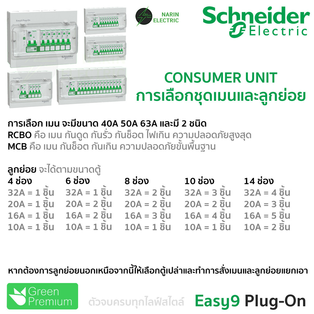 Schneider Easy9 ตู้คอนซูมเมอร์ยูนิต 4-14 ช่อง | RCBO หรือ MCB | 40A/50A/63A | ตู้ไฟบ้านสำเร็จรูป | รุ่น Easy9 Plug-On