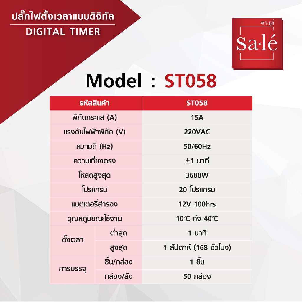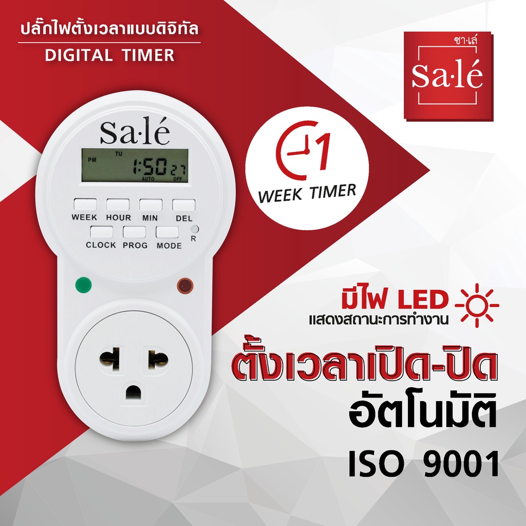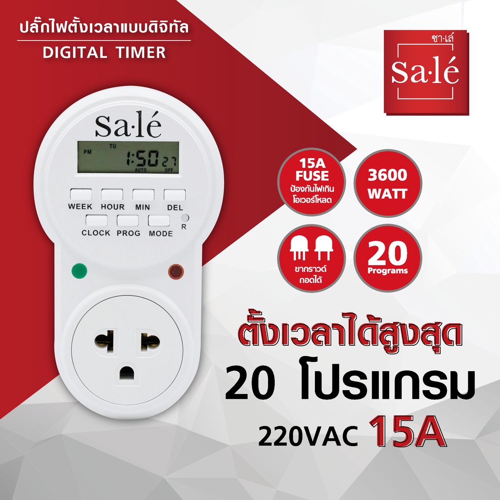 ปลั๊กไฟตั้งเวลา แบบดิจิทัล (Digital Timer) 3500w ปลั๊กไฟตั้งเวลา 24 ชั่วโมง ระบบดิจิตอล ตั้งเวลาเปิดปิดได้ 20 โปรแกรม