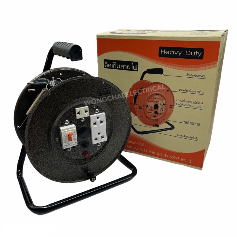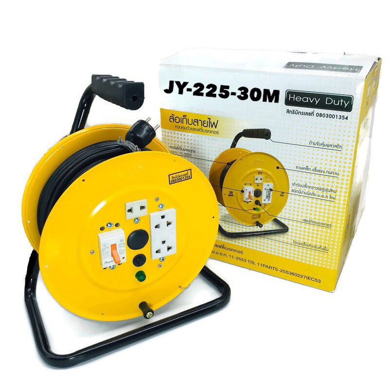 ล้อเก็บสายไฟVCT 2X2.5Sq.mm.พร้อมสายไฟ 30 เมตร สีเหลือง-สีดำ รุ่นมีเบรคเกอร์ควบคุม ป้องกันกระแสไฟ