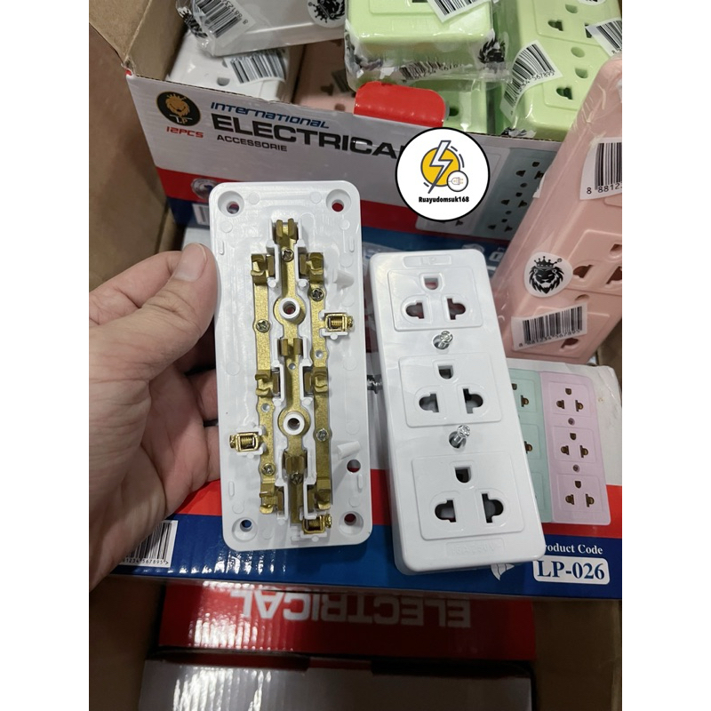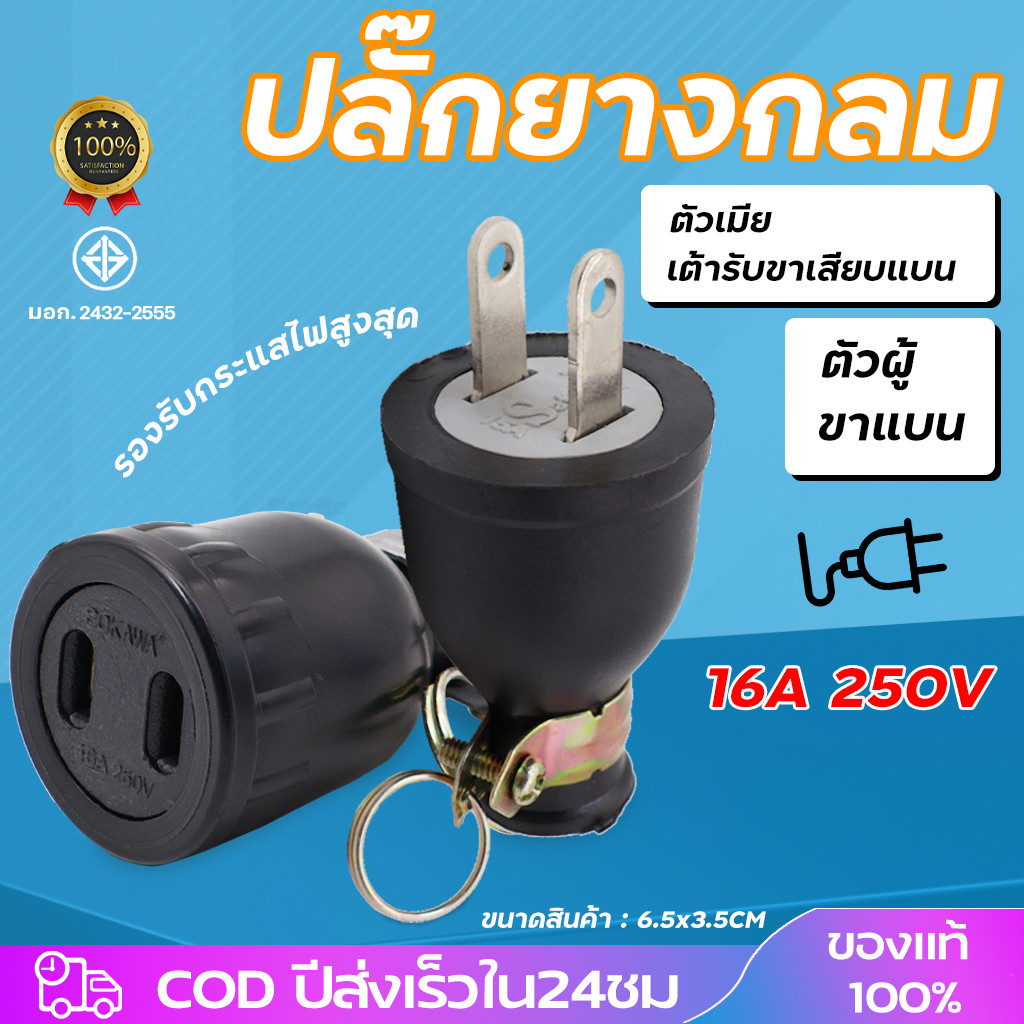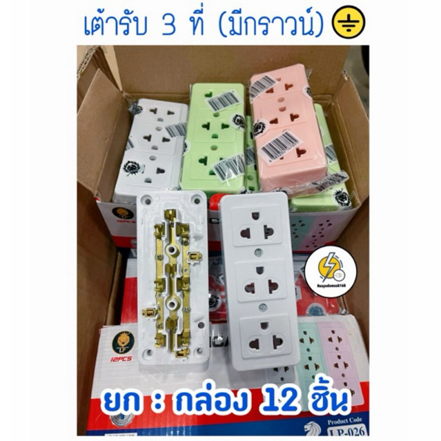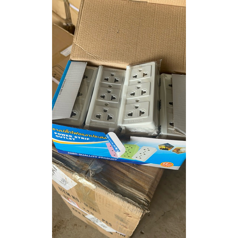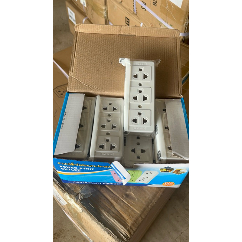 ปลั๊กลอย3 ช่องกราวน์ จริง ปลั๊ก 3 t 🍡สีขาวล้วน 🔌 มีช่องใส่สายกราวด์ 16A 250V~ ‼️ ยกกล่อง 12 ชิ้น ‼️