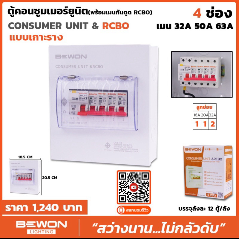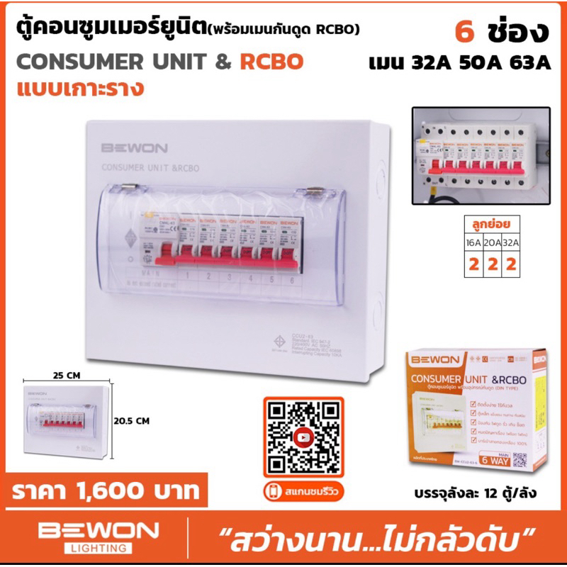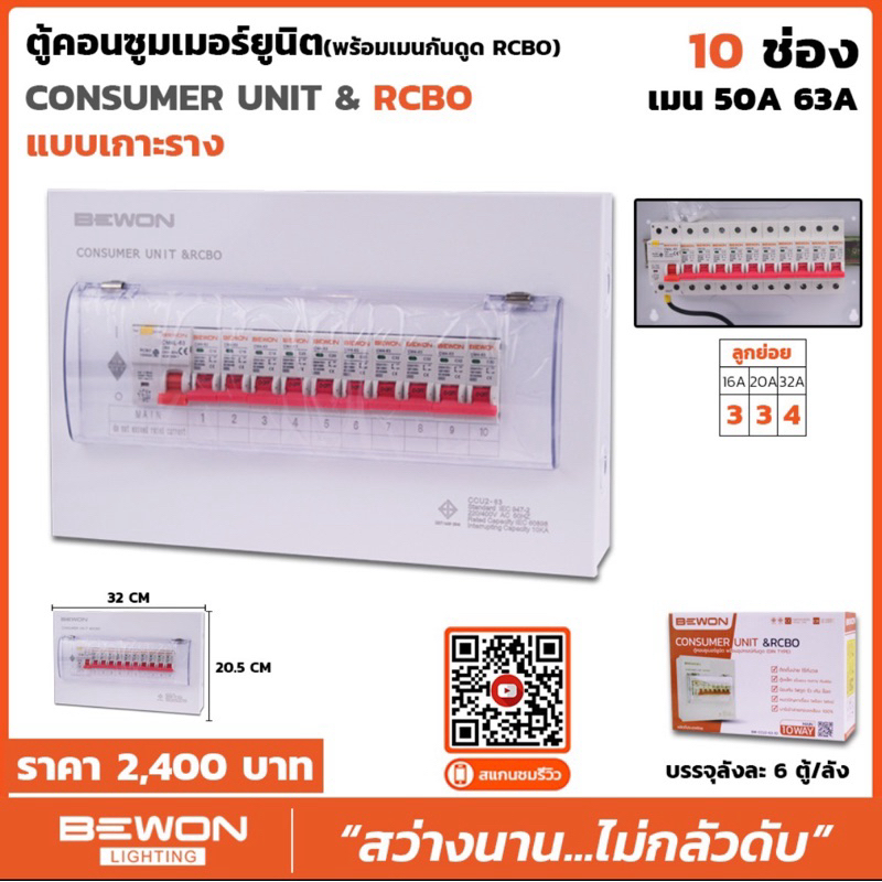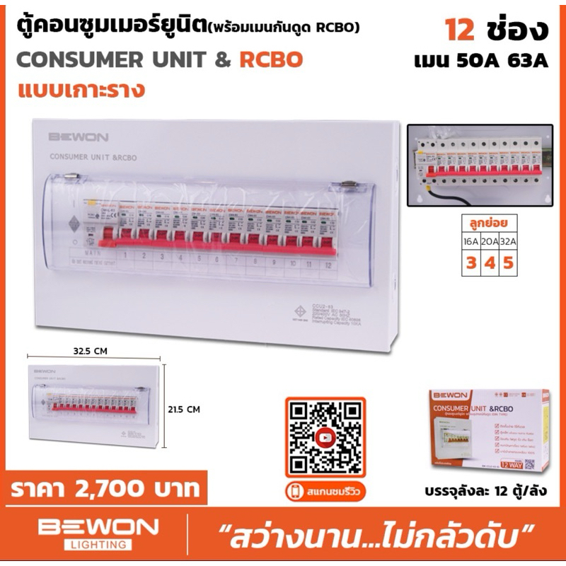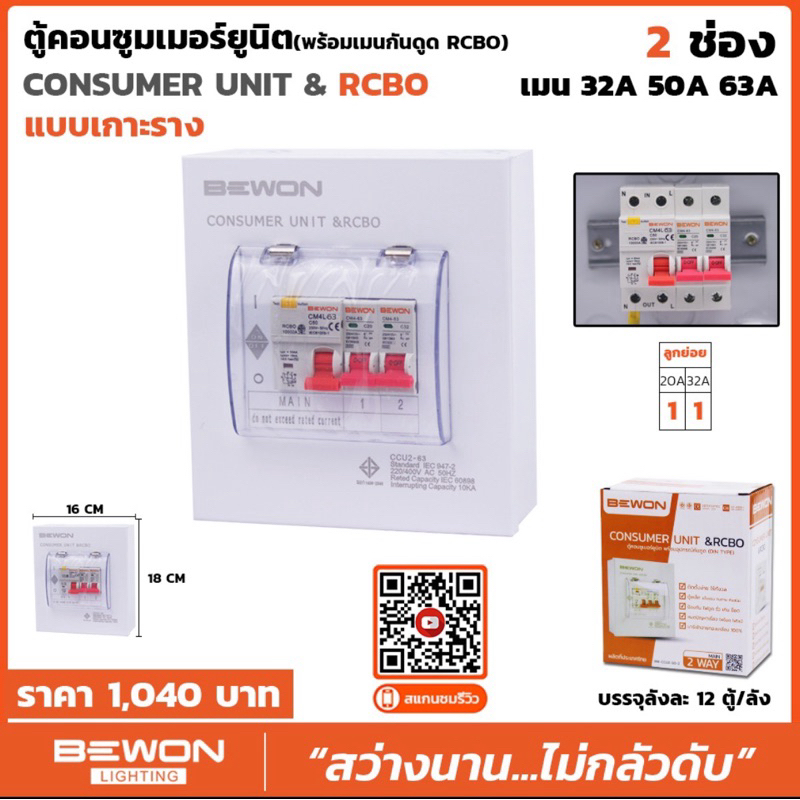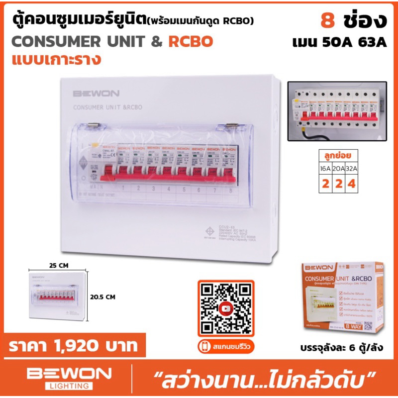 ตู้คอนซูเมอร์ยูนิทพร้อมเมนกันดูดRCBOขนาด2ช่อง,4ช่อง,6ช่อง,8ช่อง,10ช่อง,12ช่องยี่ห้อบีวัน