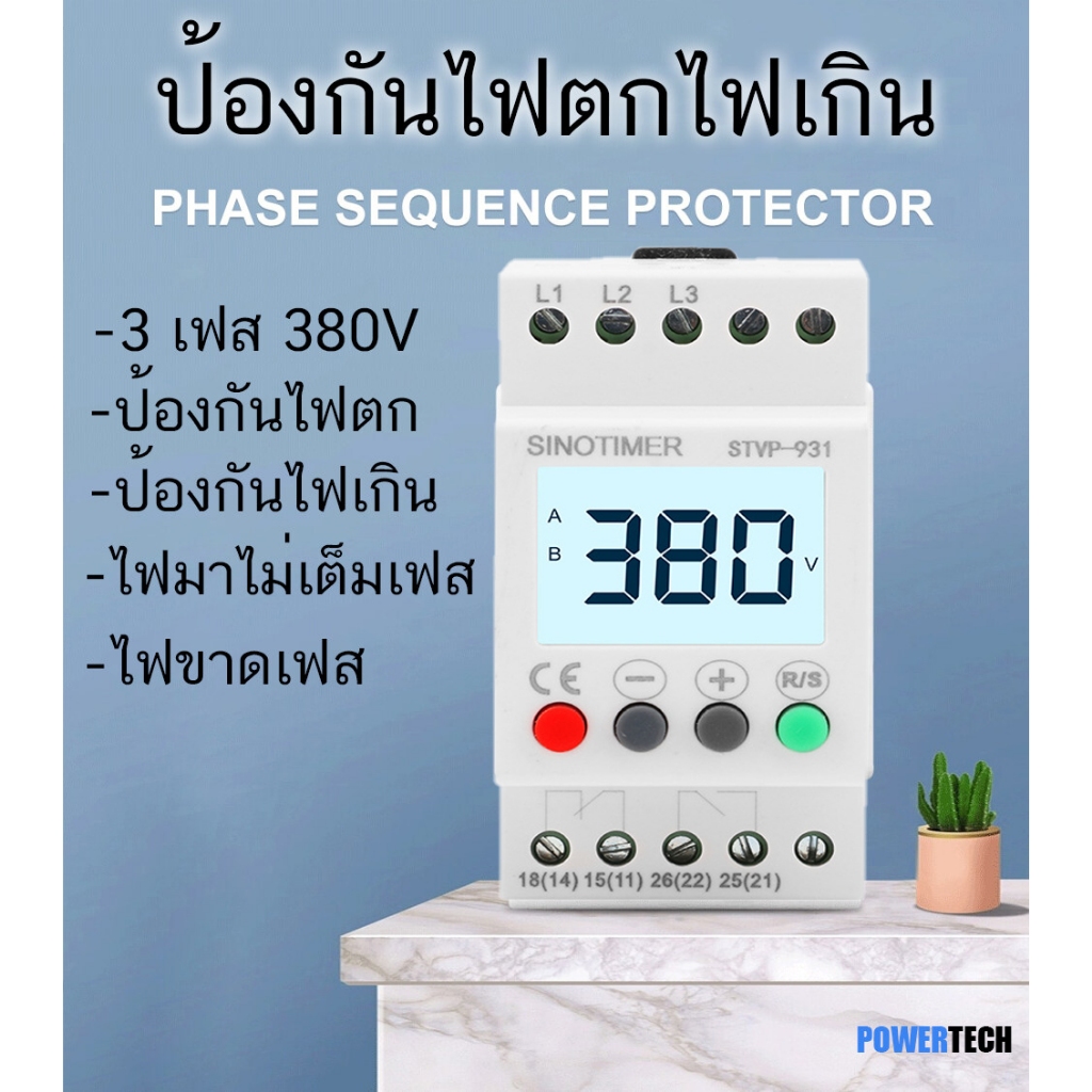 ป้องกันไฟตก ไฟเกิน ไฟขากเฟส 3เฟส 380v 3Phase Protector DIN Rail SINOTIMER