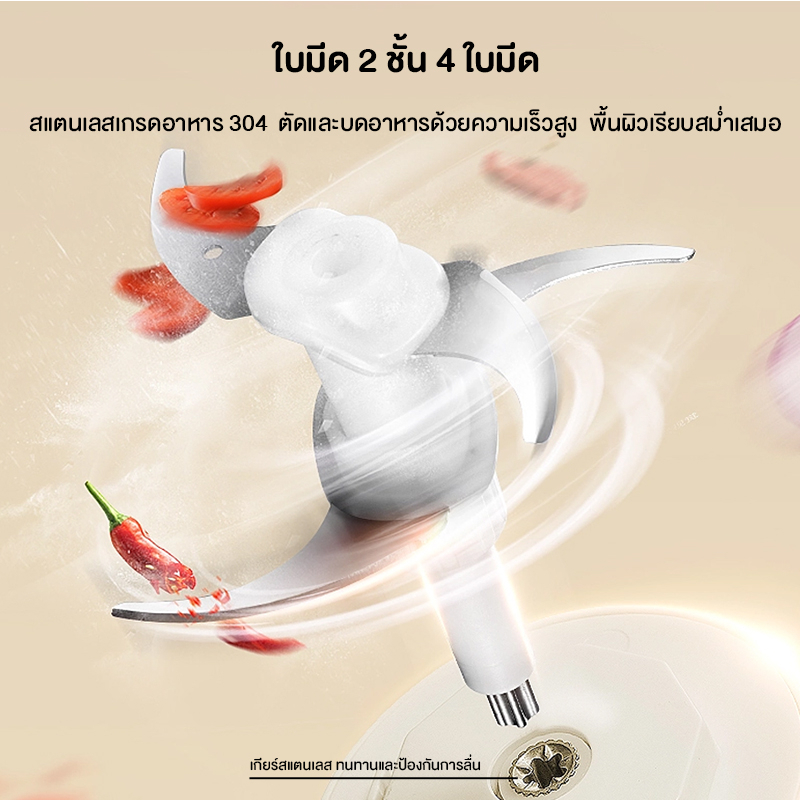 2in1 เครื่องปั่นกระเทียม เครื่องบดอาหาร เครื่องบดเนื้อไฟฟ้า มีดไซโคลน 4 ใบมีด ตัดได้สม่ำเสมอ 350 มล. หนาขึ้น