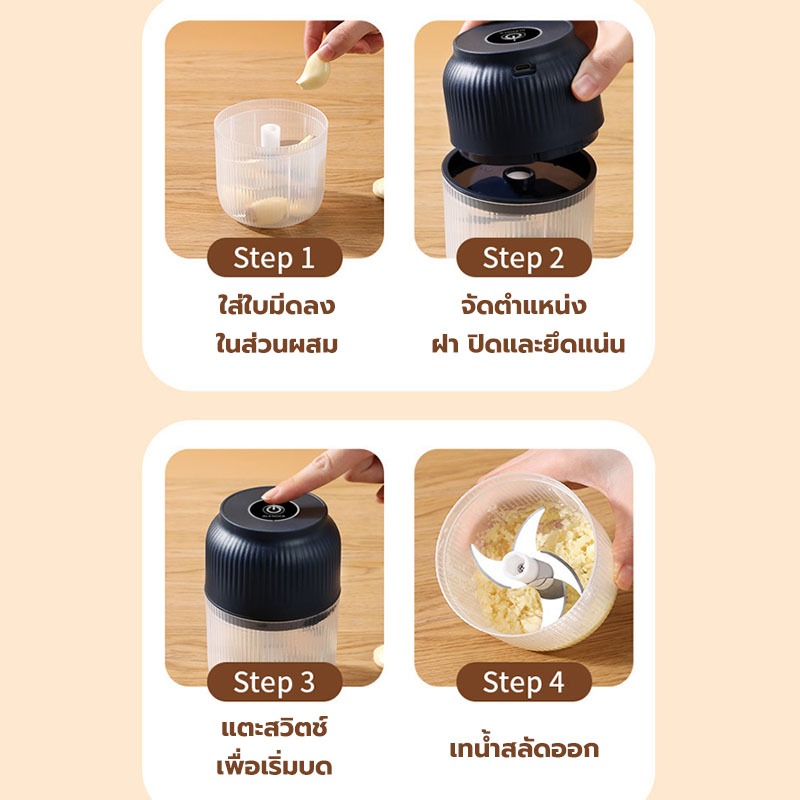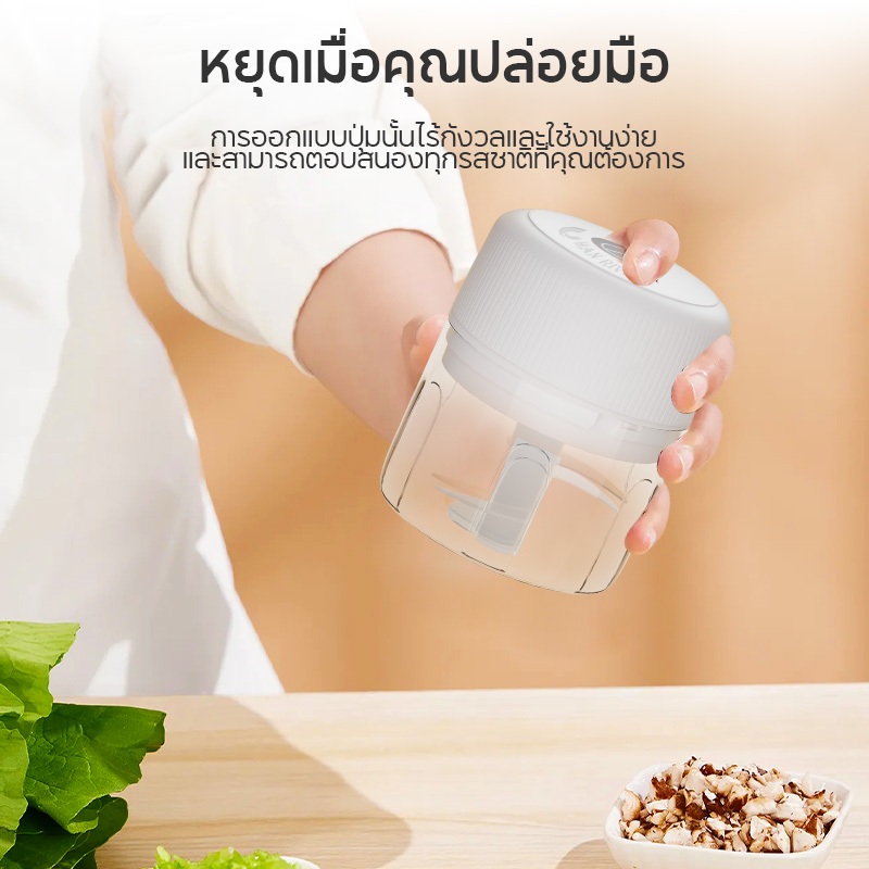 【Agate ของแท้】เครื่องปั่นกระเทียม มินิไร้สาย USB ห้องครัว ปั่นละเอียด ประหยัดไฟ