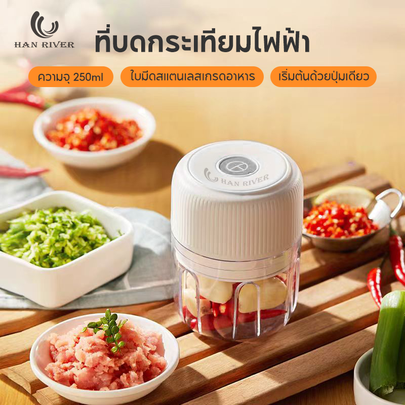 HAN RIVER ปั่นกระเทียมไร้สาย พริก 250ML พกพาสะดวก 30W ปั่นละเอียด เครื่องปั่นบดไฟฟ้า USB มินิไร้สาย