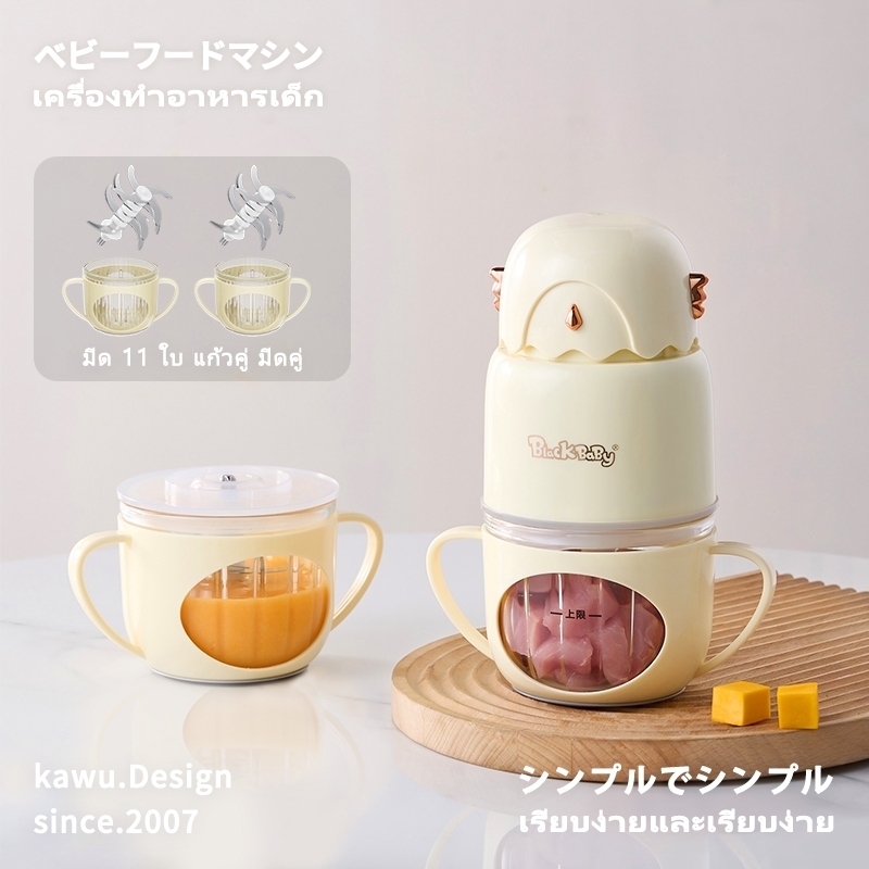 Kawu เครื่องบดอาหารเด็ก 11ใบใบมีด 300ml แก้วคู่มีดคู่ เครื่องปั่น ที่บดข้าวเด็กทารก พร้อมที่จับกันตก