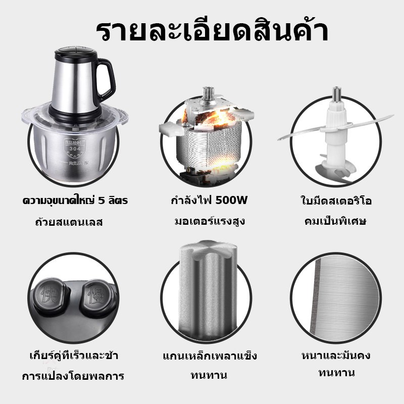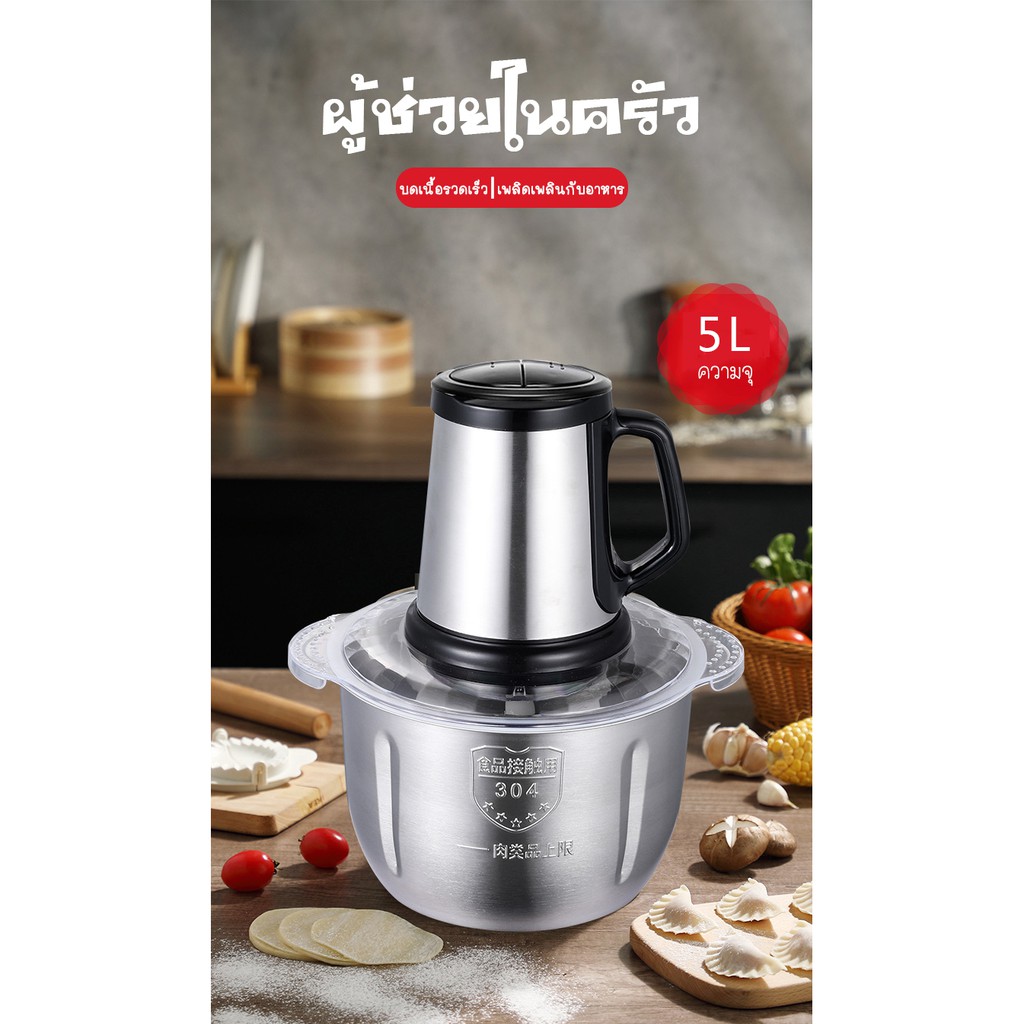 เครื่องผสมอาหาร ไฟฟ้า เครื่องบดสับอาหาร ปั่นพริก อเนกประสงค์ Electric Chopper 5ลิตร 5ใบมีด