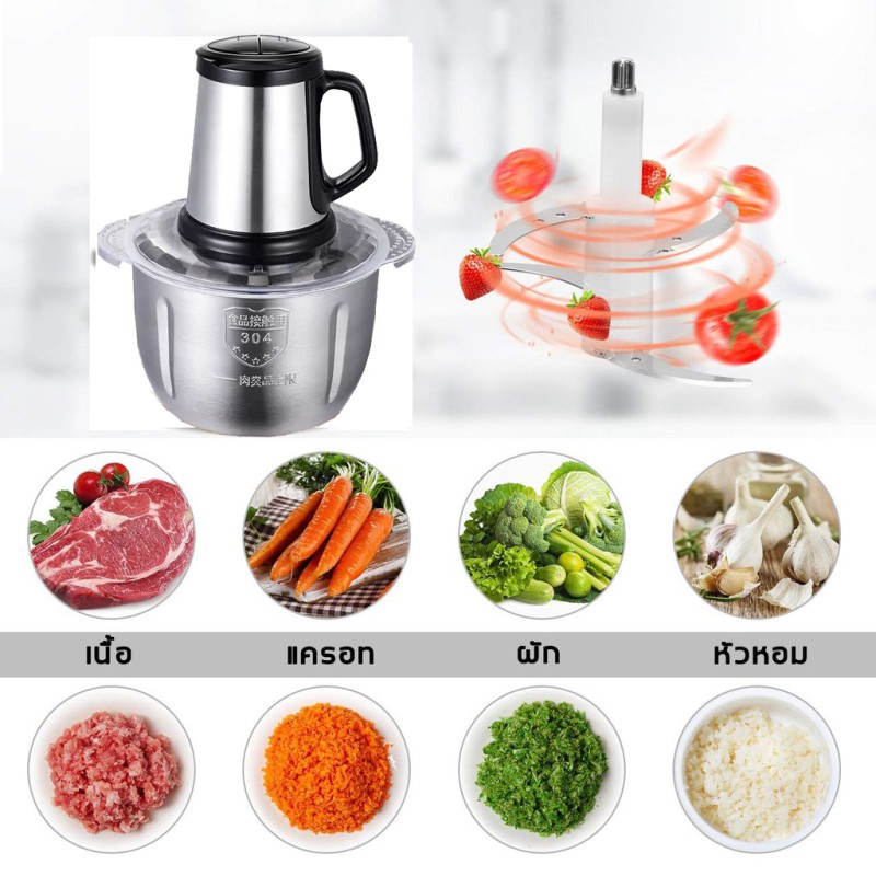 เครื่องบดอาหาร บดเนื้อหมู ผัก ผลไม้ เครื่องปั่นอาหาร ประสิทธิภาพสูง กำลังไฟ 200 วัตต์ ทำให้บดสับได้ละเอียด