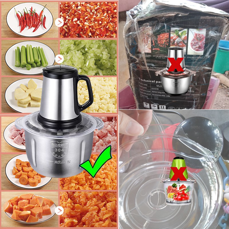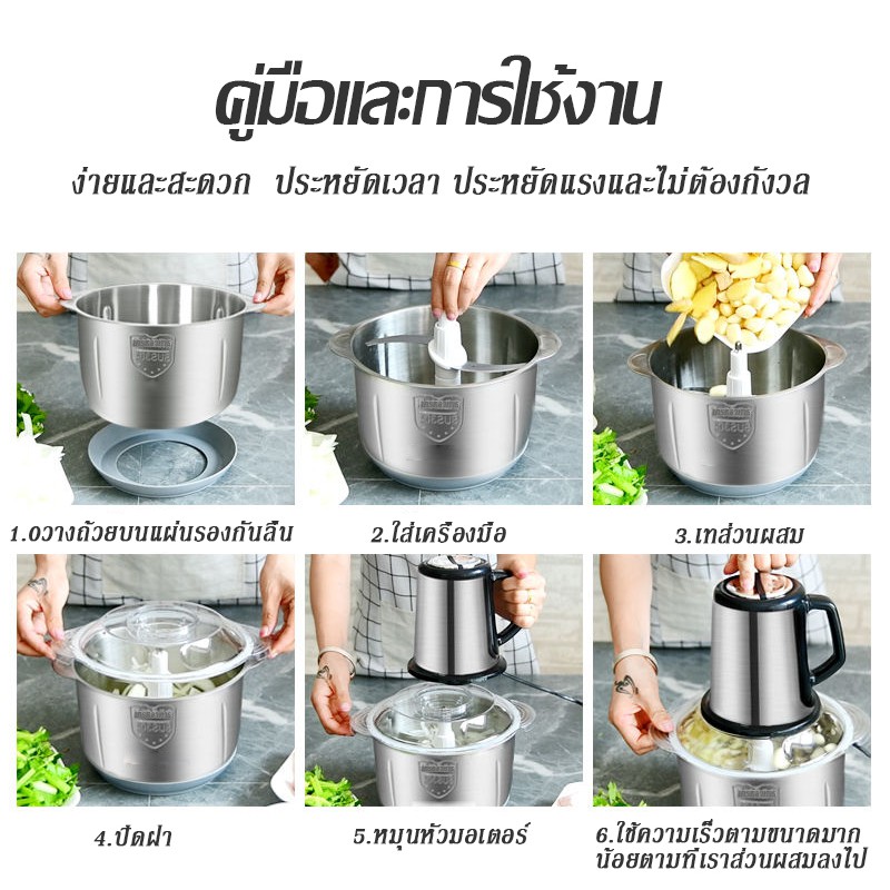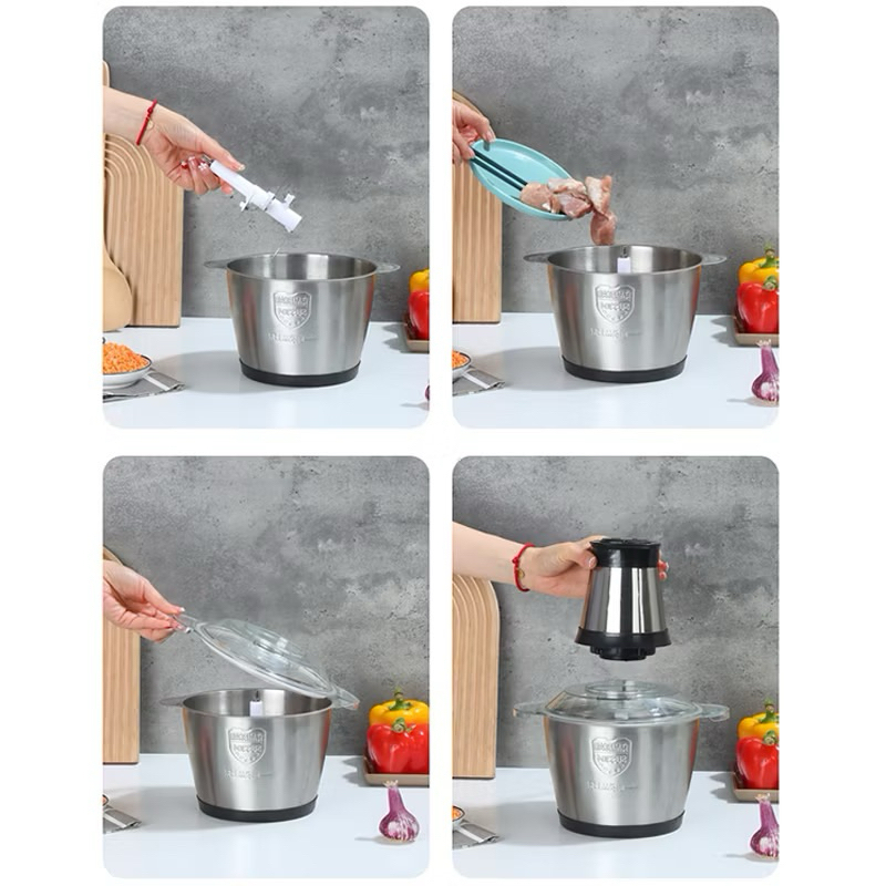 เครื่องบดสับไฟฟ้าเครื่องปั่นอาหารโถบดสแตนเลสเครื่องบดสับเอนกประสงค์