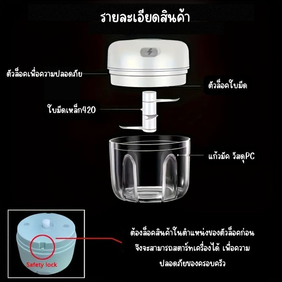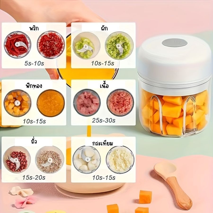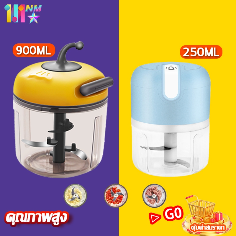 เครื่องปั่นกระเทียม250ml เครื่องปั่นมือดึง100-900ML รวดเร็วและสะดวก