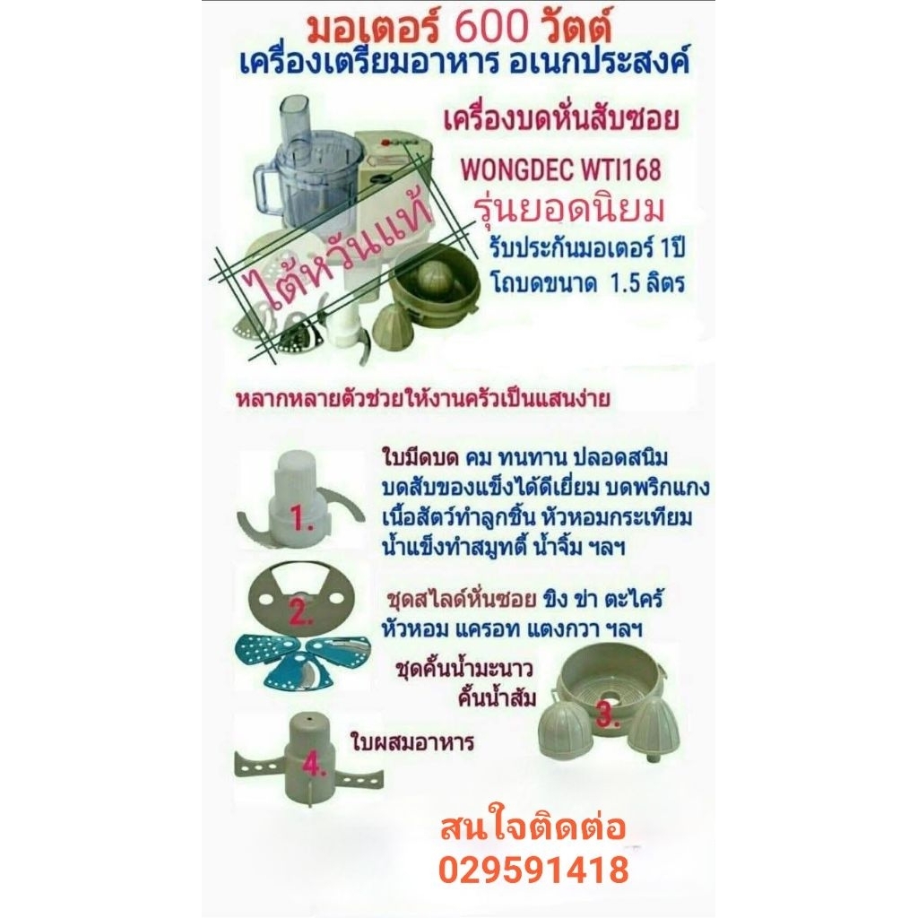 เครื่องเตรียมอาหาร บดหั่น สับ ซอย ยี่ห้อ Wongdec รุ่น WTI-168A (HP 8118)