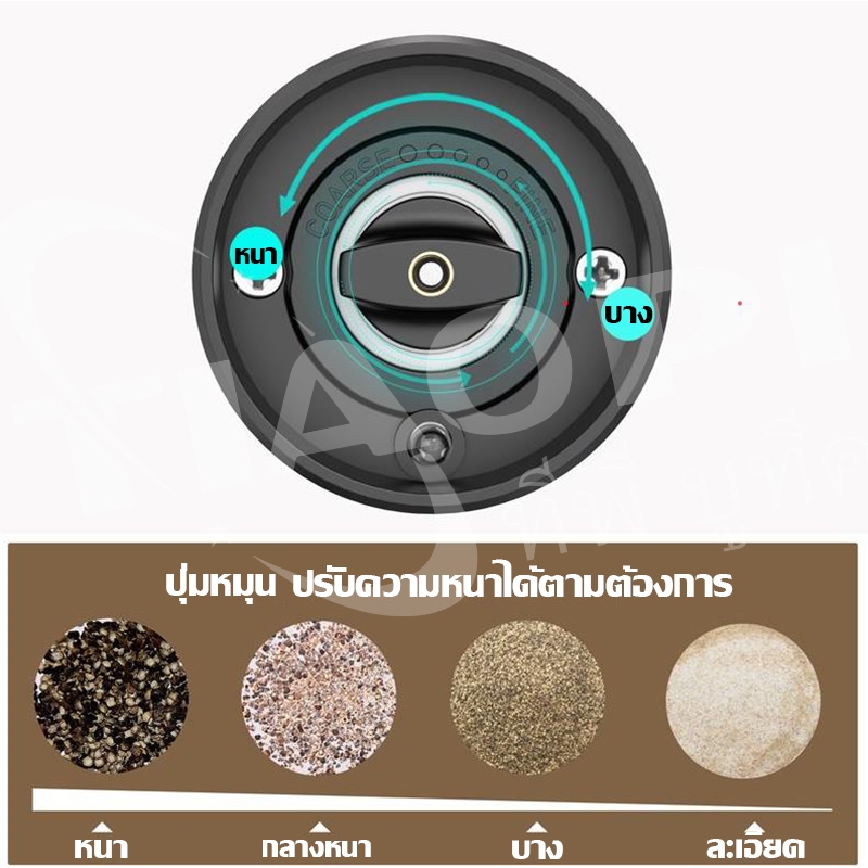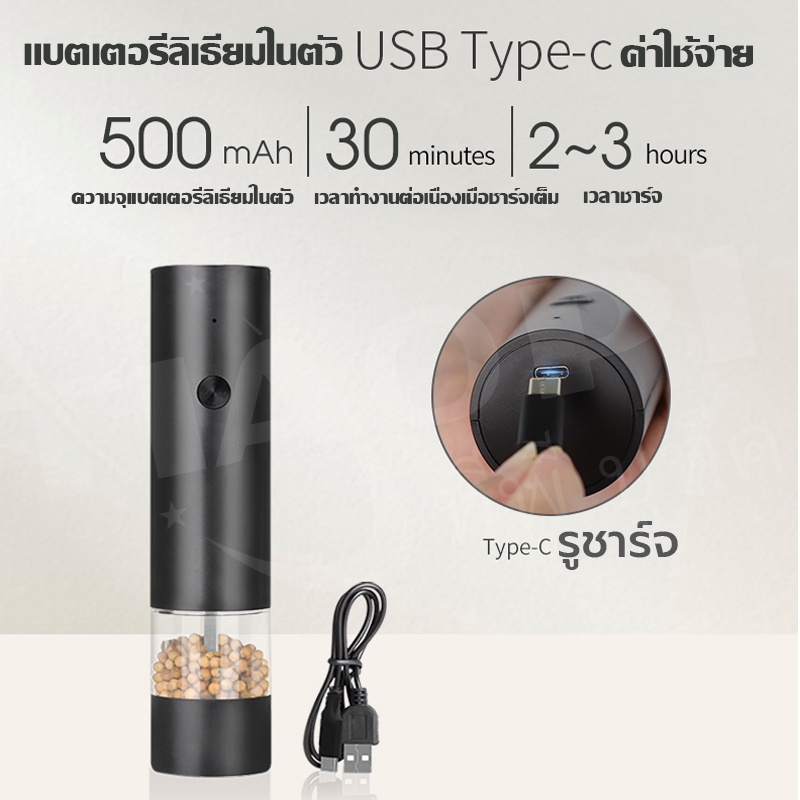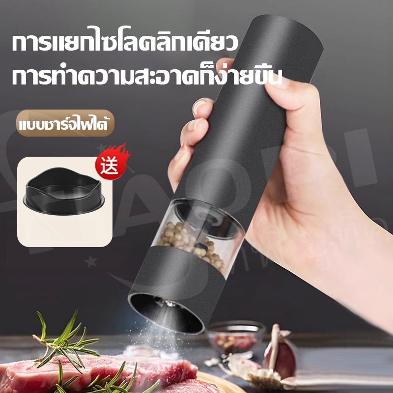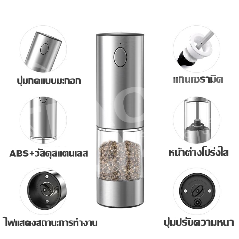 เครื่องบดพริกไทยอัตโนมัติ วัสดุเกรดอาหารปลอดภัย หัวบดเซรามิกไม่เป็นสนิม ทนทาน