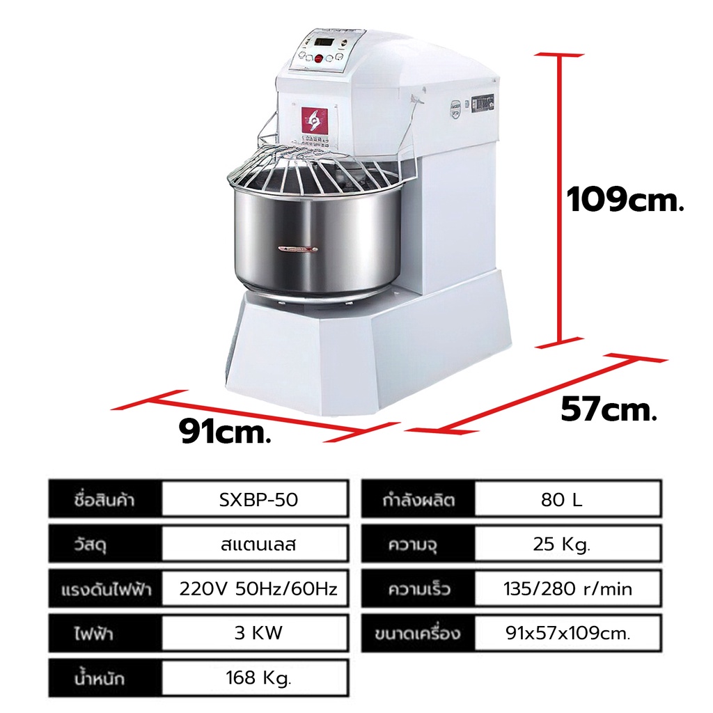 KitchenMall เครื่องนวดแป้ง Spriral เครื่องนวดแป้งเบเกอรี นวดแป้งขนมปัง Dough mixer ขนาด 2.5-80 ลิตร รุ่น SXBP (ผ่อน 0%)
