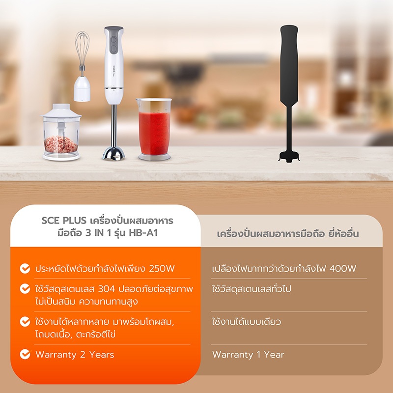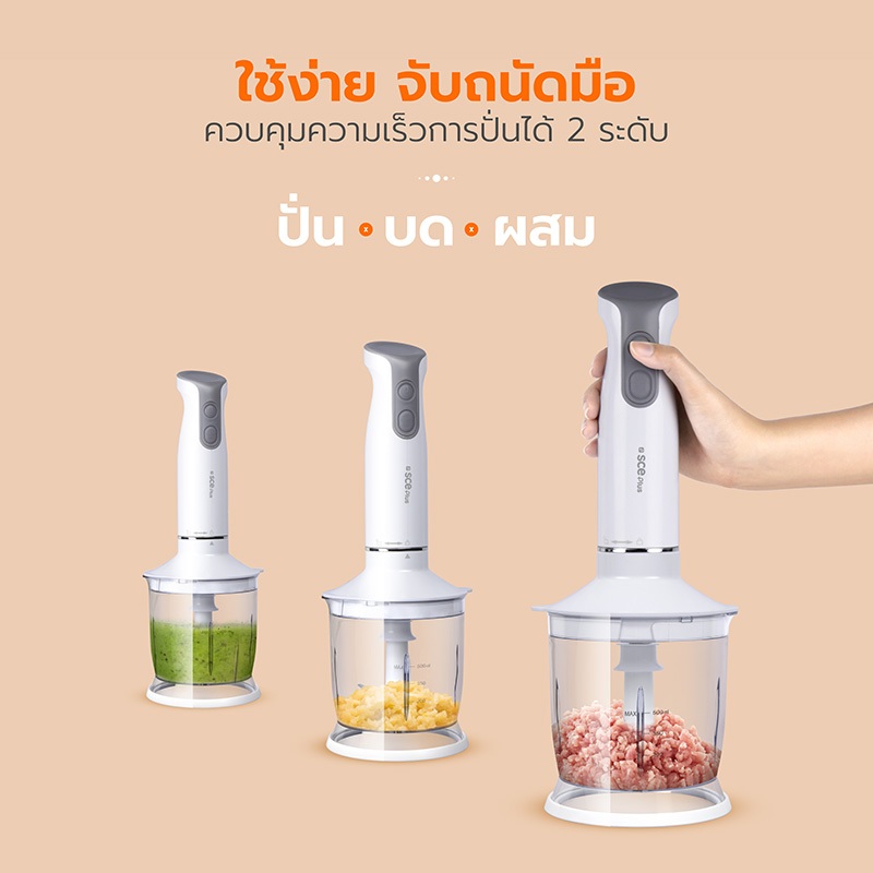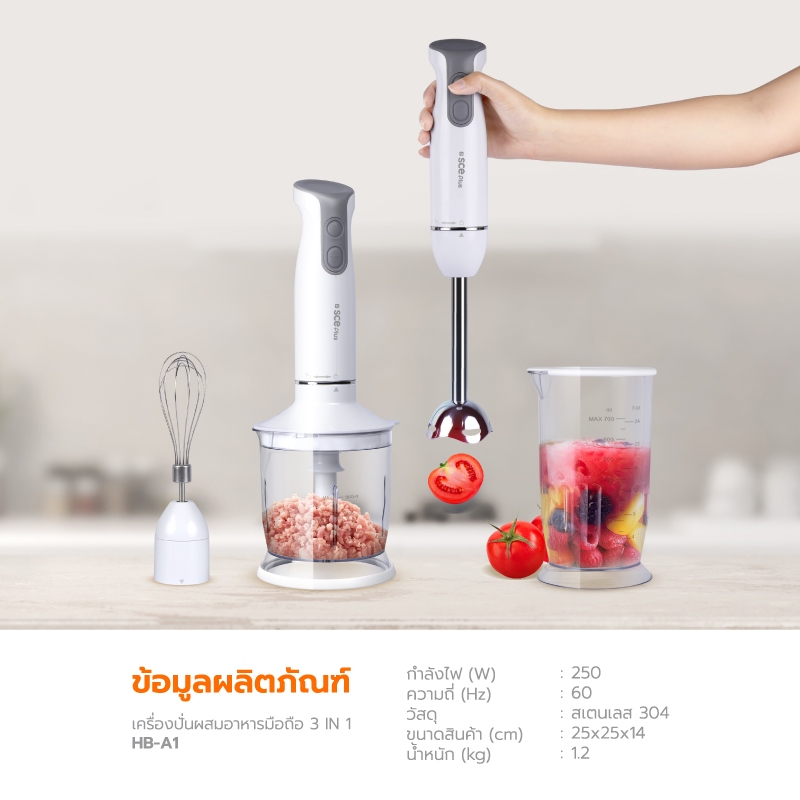 SCE Plus เครื่องปั่นผสมอาหารมือถือ 3 in 1 รุ่น HB-A1 – รับประกัน 2 ปี