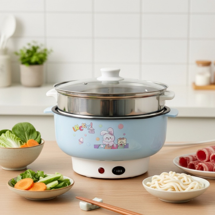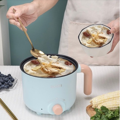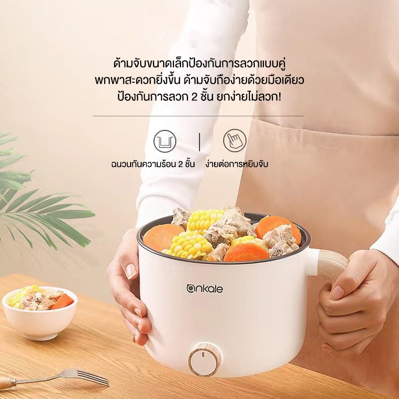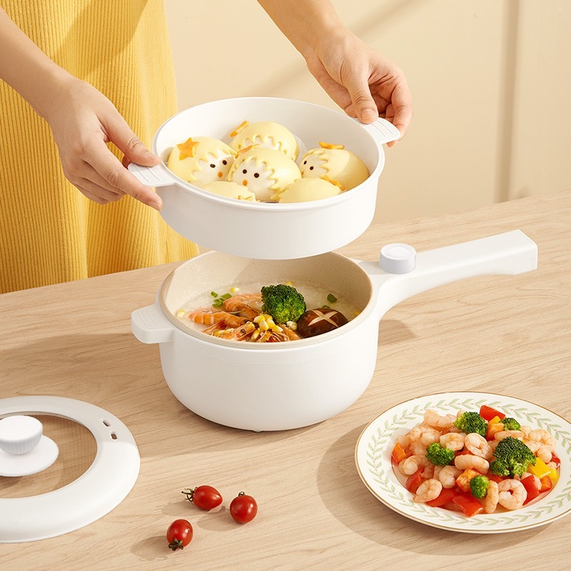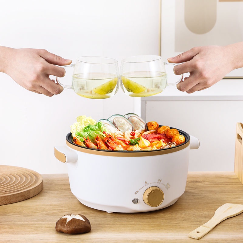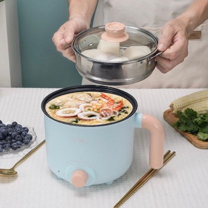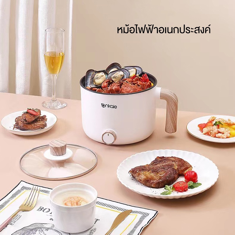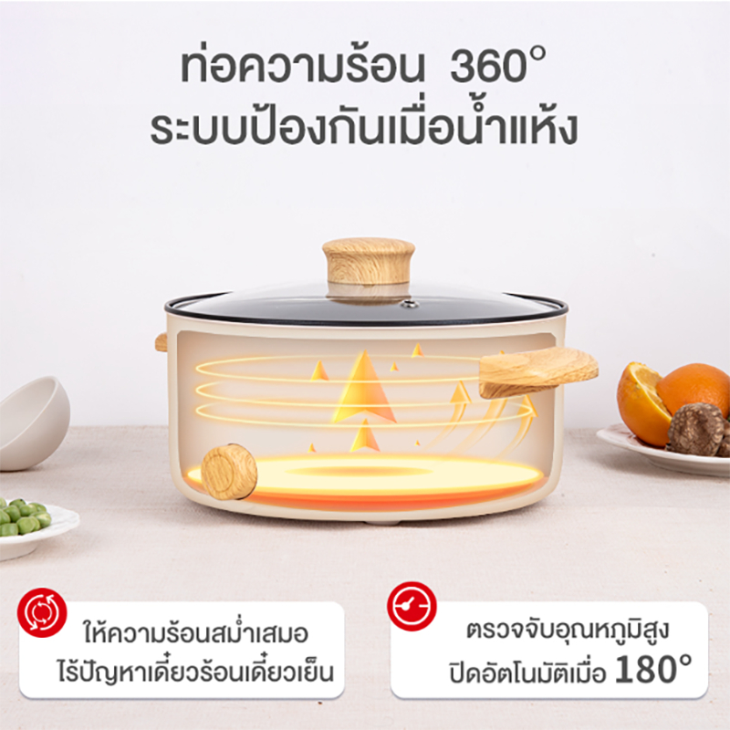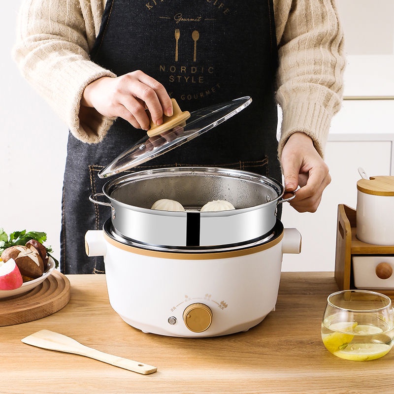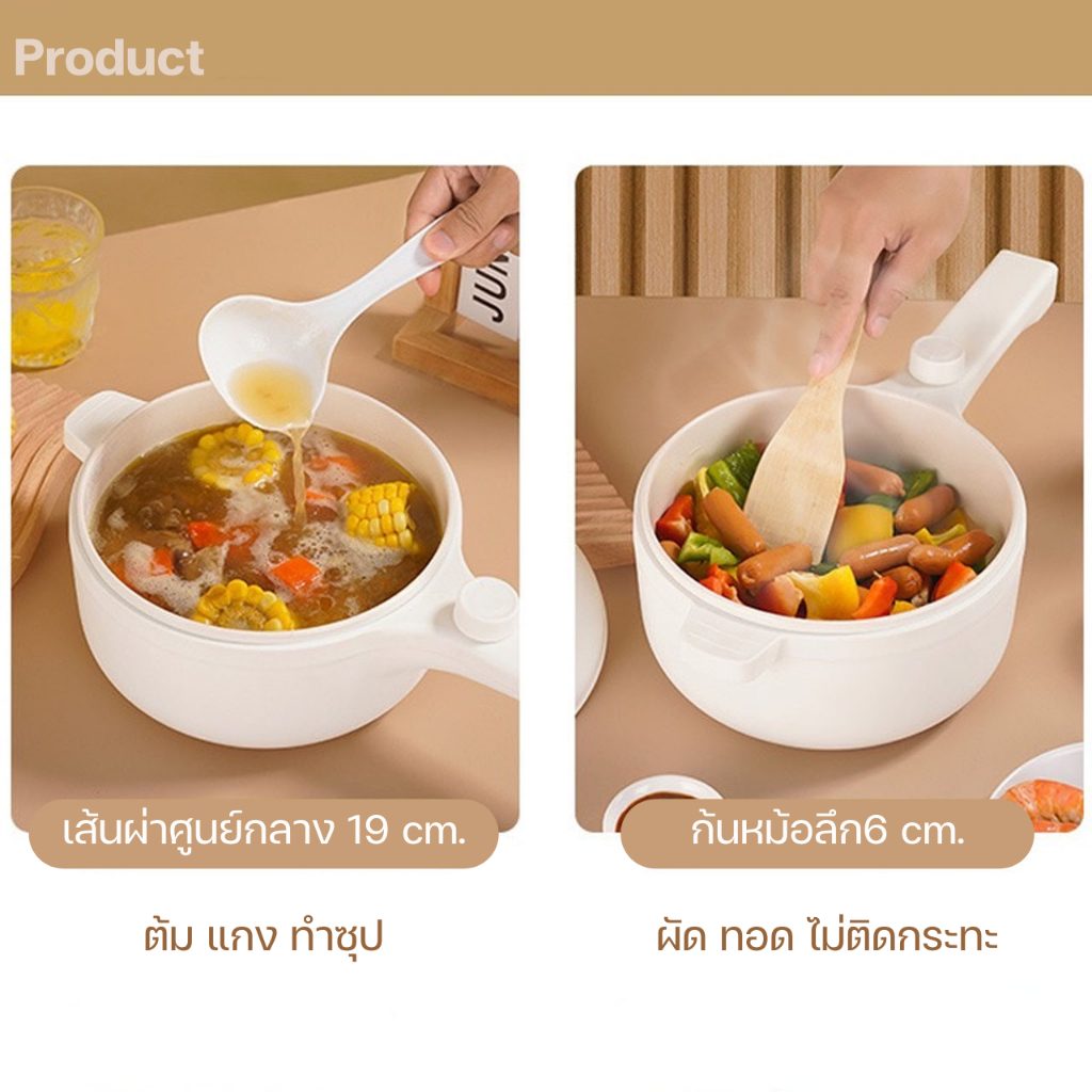 หม้อไฟฟ้าอเนกประสงค์ 1.5 ลิตร ควบคุมอุณหภูมิได้ 2 ระดับ หม้อต้มบะหมี่ หม้อต้มยำกุ้ง หม้อต้มยำทะเล หม้อไฟฟ้า อุ่น ตุ๋น ต้ม นึ่ง ทอด ซุป โจ๊ก หม้อพร้อมฝาปิด หม้อ หม้อด้ามจับไม้ หม้อมินิมอล หม้อขนาดเล็ก