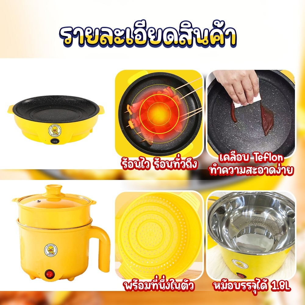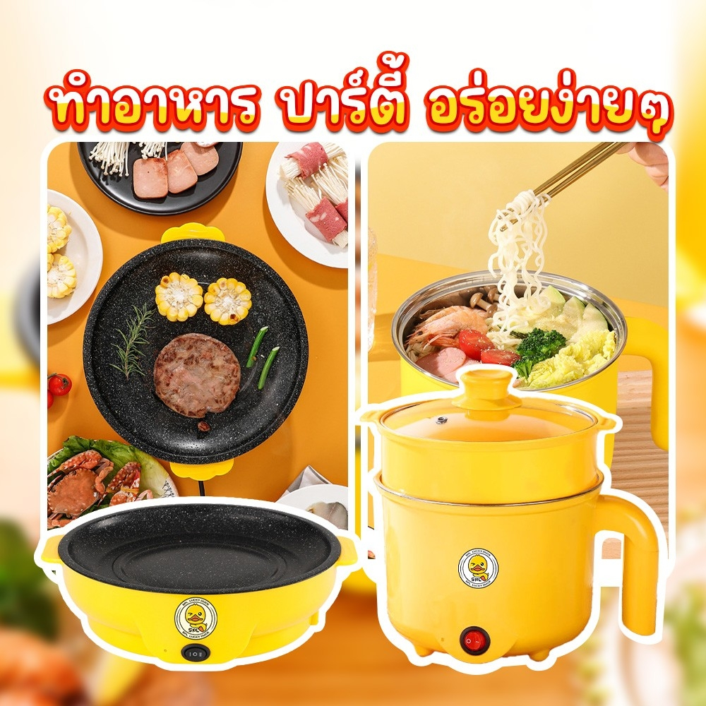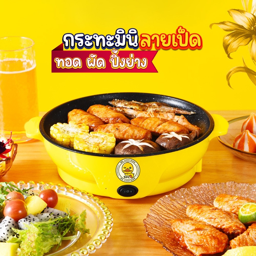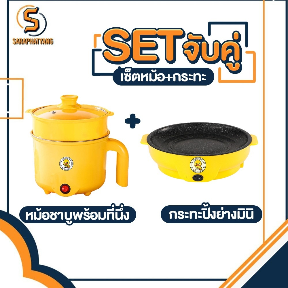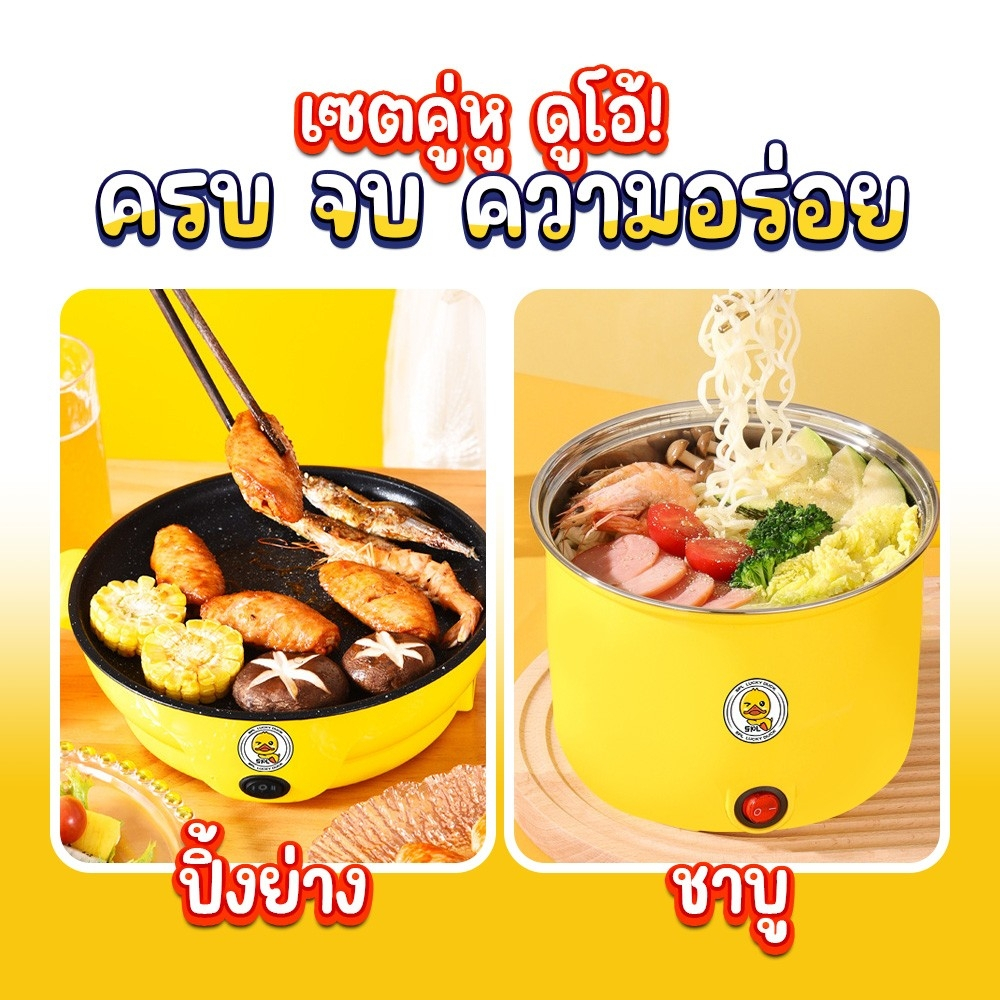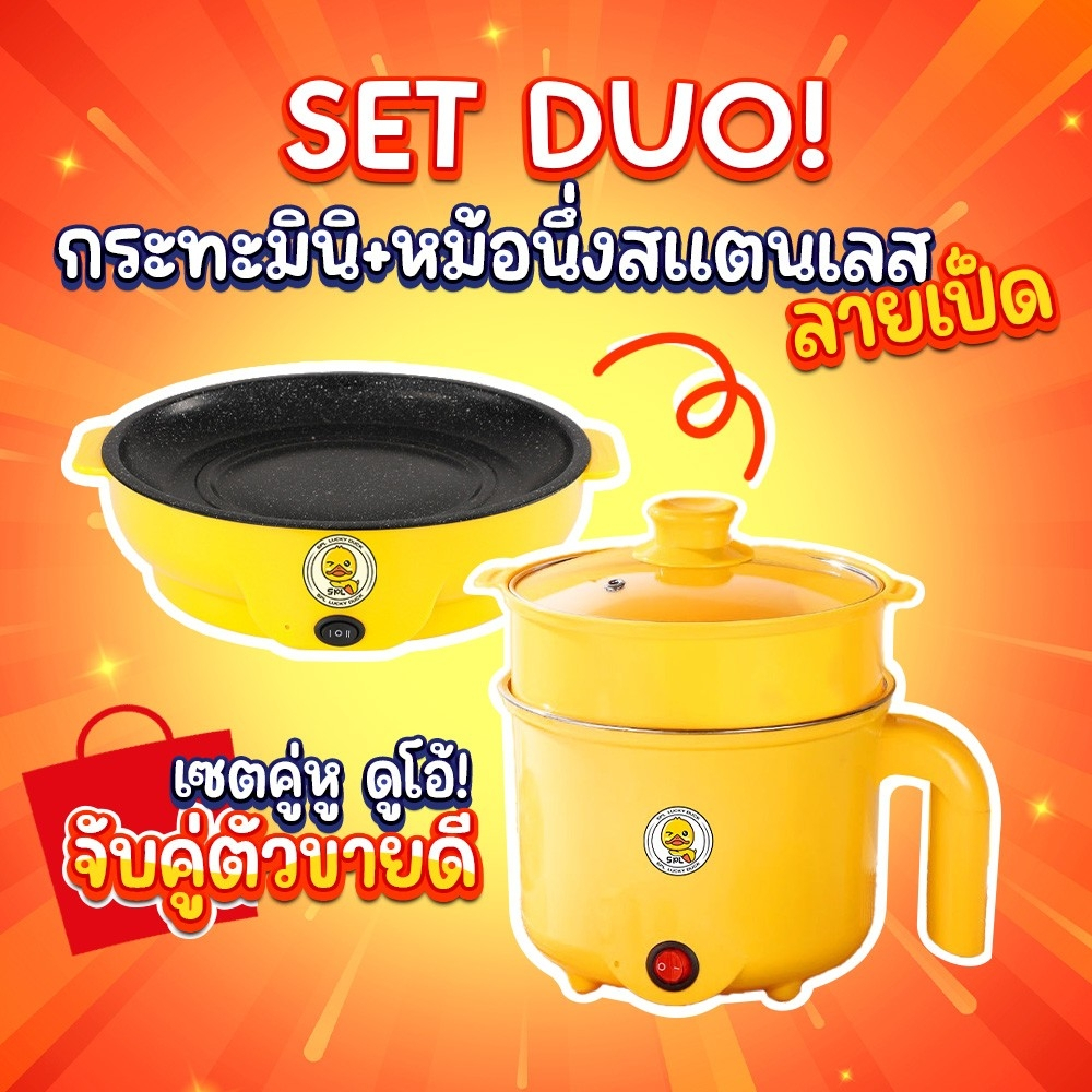 เซตคู่ หม้อ+กระทะ ลายเป็ด ได้2ชิ้น หม้ออเนกประสงค์ กระทะมินิ เตาปิ้งย่างไฟฟ้า หม้อสุกี้ Meka.trend